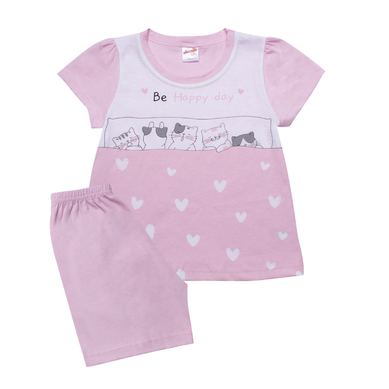 Παιδικές πιτζάμες από τη συλλογή Minervakia της εταιρείας Minerva. Πρόκειται για σετ από κοντομάνικη μπλούζα με σορτσάκι. Έχουν ροζ χρώμα με καρδούλες και τύπωμα με γατάκια. Είναι κατασκευασμένες από 100% βαμβακερό ύφασμα, που προσδίδει ιδιαίτερη απαλότητα, αντοχή και σωστή εφαρμογή. Είναι ιδιαίτερα ανθεκτικές και διατηρούν τη φόρμα τους. Τα χρώματα έχουν δημιουργηθεί με την μέθοδο της νηματοβαφής (μέσα στην ύφανση), με αποτέλεσμα να παραμένουν αναλλοίωτα στην χρήση και τις πλύσεις. Σε όλα τα στάδια παραγωγής έχουν χρησιμοποιηθεί υποαλλεργικά υλικά χωρίς επιβλαβείς ουσίες προς την υγεία. Διαθέτουν τα διεθνή πιστοποιητικά ποιότητας και ασφάλειας ISO 9001:2000 , ISO 9002, Oeko-Tex Standard 100, Eco Textile Label. Αποτελούν προϊόντα ελληνικής ραφής με την εγγύηση ποιότητας και αξιοπιστίας της εταιρείας Minerva. Μεγεθολόγιο ανάλογα με ηλικία και ύψος παιδιού: Νο1 (1-2 ετών, 78-90cm), Νο2 (2-3 ετών, 90-98cm), No3 (3-4 ετών, 98-104cm), No4 (4-6 ετών, 104-116cm), No6 (6-8 ετών, 116-128cm), No8 (8-10 ετών, 128-140cm), No10 (10-12 ετών, 140-152cm), No12 (12-14 ετών, 152-164cm για αγόρι, 152-158cm για κορίτσι), No14 (14-16 ετών, 164-172cm για αγόρι, 158-164cm για κορίτσι), No16 (16-18 ετών, 172-180cm για αγόρι, 164-170cm για κορίτσι)