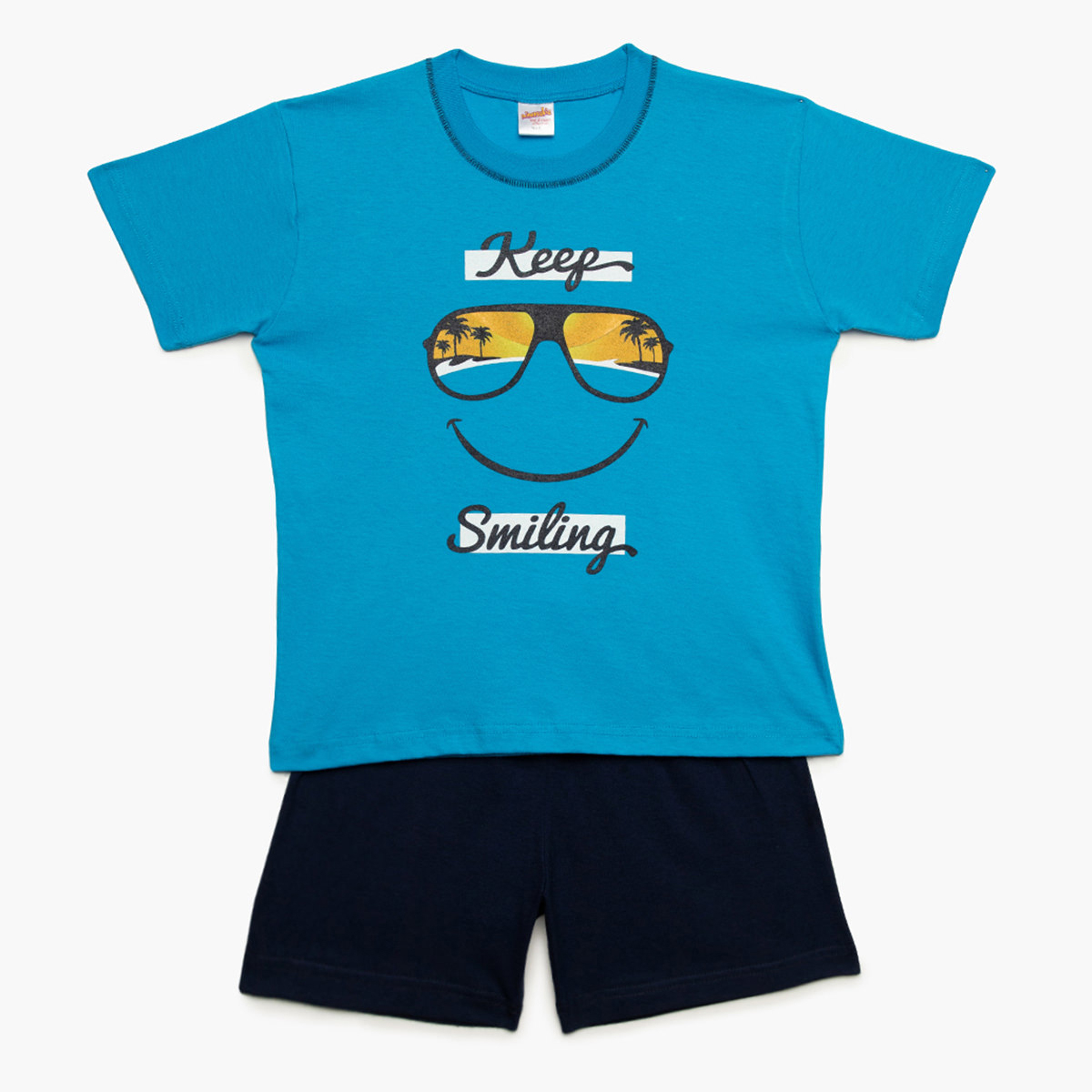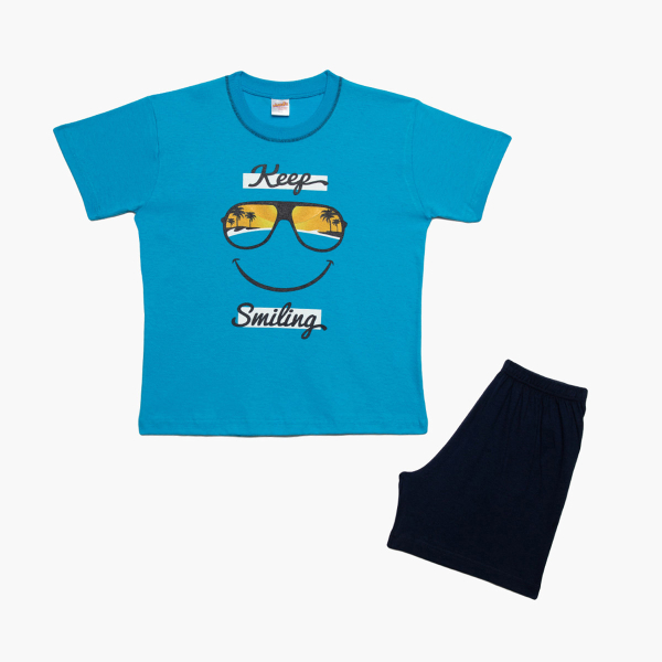 Παιδικές πιτζάμες (κωδ.: 61958-171) από τη συλλογή Minervakia της εταιρείας Minerva. Πρόκειται για σετ από κοντομάνικη μπλούζα με σορτσάκι. Έχουν τυρκουάζ και μπλε απόχρωση και φέρουν μοντέρνο σχέδιο. Είναι κατασκευασμένες από 100% βαμβακερό ύφασμα, που προσδίδει ιδιαίτερη απαλότητα, αντοχή και σωστή εφαρμογή. Είναι ιδιαίτερα ανθεκτικές και διατηρούν τη φόρμα τους. Τα χρώματα έχουν δημιουργηθεί με την μέθοδο της νηματοβαφής (μέσα στην ύφανση), με αποτέλεσμα να παραμένουν αναλλοίωτα στην χρήση και τις πλύσεις. Σε όλα τα στάδια παραγωγής έχουν χρησιμοποιηθεί υποαλλεργικά υλικά χωρίς επιβλαβείς ουσίες προς την υγεία. Διαθέτουν τα διεθνή πιστοποιητικά ποιότητας και ασφάλειας ISO 9001:2000 , ISO 9002, Oeko-Tex Standard 100, Eco Textile Label. Αποτελούν προϊόντα ελληνικής ραφής με την εγγύηση ποιότητας και αξιοπιστίας της εταιρείας Minerva. Μεγεθολόγιο ανάλογα με ηλικία και ύψος παιδιού: Νο1 (1-2 ετών, 78-90cm), Νο2 (2-3 ετών, 90-98cm), No3 (3-4 ετών, 98-104cm), No4 (4-6 ετών, 104-116cm), No6 (6-8 ετών, 116-128cm), No8 (8-10 ετών, 128-140cm), No10 (10-12 ετών, 140-152cm), No12 (12-14 ετών, 152-164cm για αγόρι, 152-158cm για κορίτσι), No14 (14-16 ετών, 164-172cm για αγόρι, 158-164cm για κορίτσι), No16 (16-18 ετών, 172-180cm για αγόρι, 164-170cm για κορίτσι)
