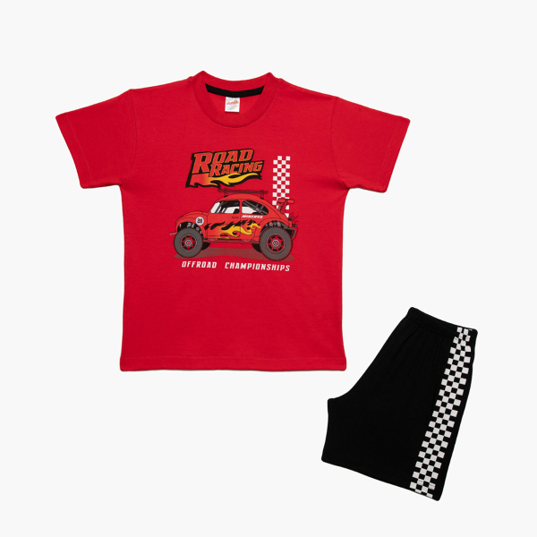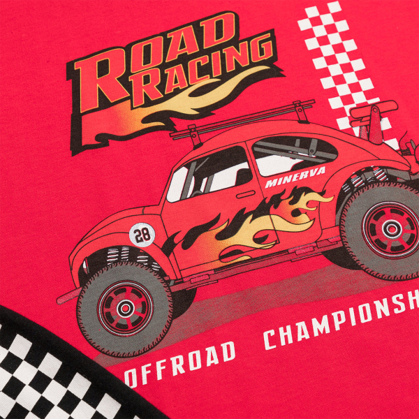 Παιδικές πιτζάμες (κωδ.: 61955-118) από τη συλλογή Minervakia της εταιρείας Minerva. Πρόκειται για σετ από κοντομάνικη μπλούζα με σορτσάκι. Έχουν κόκκινο και μαύρο χρώμα και φέρουν μοντέρνο σχέδιο. Είναι κατασκευασμένες από 100% βαμβακερό ύφασμα, που προσδίδει ιδιαίτερη απαλότητα, αντοχή και σωστή εφαρμογή. Είναι ιδιαίτερα ανθεκτικές και διατηρούν τη φόρμα τους. Τα χρώματα έχουν δημιουργηθεί με την μέθοδο της νηματοβαφής (μέσα στην ύφανση), με αποτέλεσμα να παραμένουν αναλλοίωτα στην χρήση και τις πλύσεις. Σε όλα τα στάδια παραγωγής έχουν χρησιμοποιηθεί υποαλλεργικά υλικά χωρίς επιβλαβείς ουσίες προς την υγεία. Διαθέτουν τα διεθνή πιστοποιητικά ποιότητας και ασφάλειας ISO 9001:2000 , ISO 9002, Oeko-Tex Standard 100, Eco Textile Label. Αποτελούν προϊόντα ελληνικής ραφής με την εγγύηση ποιότητας και αξιοπιστίας της εταιρείας Minerva. Μεγεθολόγιο ανάλογα με ηλικία και ύψος παιδιού: Νο1 (1-2 ετών, 78-90cm), Νο2 (2-3 ετών, 90-98cm), No3 (3-4 ετών, 98-104cm), No4 (4-6 ετών, 104-116cm), No6 (6-8 ετών, 116-128cm), No8 (8-10 ετών, 128-140cm), No10 (10-12 ετών, 140-152cm), No12 (12-14 ετών, 152-164cm για αγόρι, 152-158cm για κορίτσι), No14 (14-16 ετών, 164-172cm για αγόρι, 158-164cm για κορίτσι), No16 (16-18 ετών, 172-180cm για αγόρι, 164-170cm για κορίτσι)