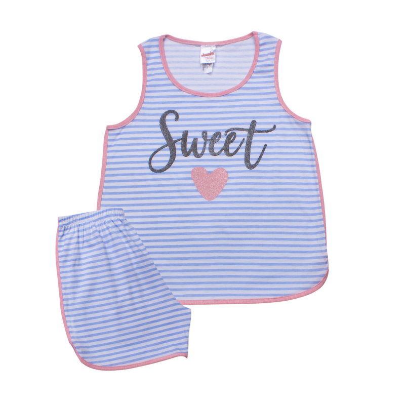 Παιδικές πιτζάμες από τη συλλογή Minervakia της εταιρείας Minerva. Πρόκειται για σετ από αμάνικη μπλούζα με σορτσάκι. Έχουν γαλάζιο και λευκό χρώμα με χαριτωμένη παράσταση και είναι ιδανικές για κορίτσια. Είναι κατασκευασμένες από 100% βαμβακερό ύφασμα πεννιέ, που προσδίδει ιδιαίτερη απαλότητα, αντοχή και σωστή εφαρμογή. Είναι ιδιαίτερα ανθεκτικές και διατηρούν τη φόρμα τους. Τα χρώματα έχουν δημιουργηθεί με την μέθοδο της νηματοβαφής (μέσα στην ύφανση), με αποτέλεσμα να παραμένουν αναλλοίωτα στην χρήση και τις πλύσεις. Σε όλα τα στάδια παραγωγής έχουν χρησιμοποιηθεί υποαλλεργικά υλικά χωρίς επιβλαβείς ουσίες προς την υγεία. Διαθέτουν τα διεθνή πιστοποιητικά ποιότητας και ασφάλειας ISO 9001:2000 , ISO 9002, Oeko-Tex Standard 100, Eco Textile Label. Αποτελούν προϊόντα ελληνικής ραφής με την εγγύηση ποιότητας και αξιοπιστίας της εταιρείας Minerva. Μεγεθολόγιο ανάλογα με ηλικία και ύψος παιδιού: Νο1 (1-2 ετών, 78-90cm), Νο2 (2-3 ετών, 90-98cm), No3 (3-4 ετών, 98-104cm), No4 (4-6 ετών, 104-116cm), No6 (6-8 ετών, 116-128cm), No8 (8-10 ετών, 128-140cm), No10 (10-12 ετών, 140-152cm), No12 (12-14 ετών, 152-164cm για αγόρι, 152-158cm για κορίτσι), No14 (14-16 ετών, 164-172cm για αγόρι, 158-164cm για κορίτσι), No16 (16-18 ετών, 172-180cm για αγόρι, 164-170cm για κορίτσι)