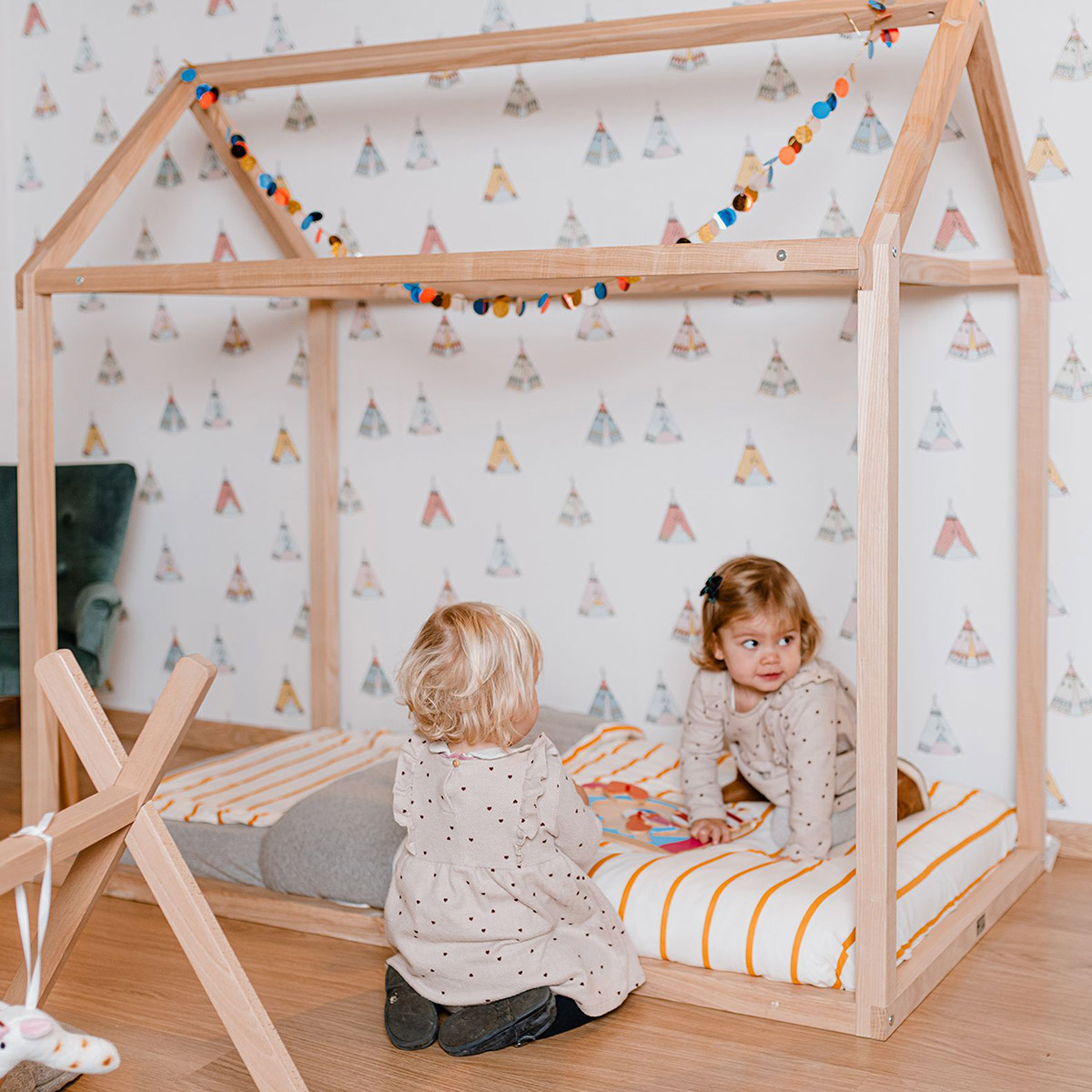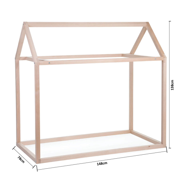 Το ξύλινο κρεβάτι της εταιρείας ChildHome έχει σχήμα σπιτιού που και δίνει στα παιδιά τον δικό τους χώρο για παιχνίδι ή ύπνο. Ολόκληρο το πλάισιο είναι κατασκευασμένο από ξύλο οξιάς και τοποθετείται απευθείας στο πάτωμα. Διακοσμείστε το με φωτάκια, υφάσματα και ότι άλλο φανταστείτε δημιουργώντας ένα μοναδικό σκηνικό. Συνδυάζεται με τον κωδικό 72928- Bάση Στρώματος ΤΙPI. **Το στρώμα δεν περιλαμβάνεται.**