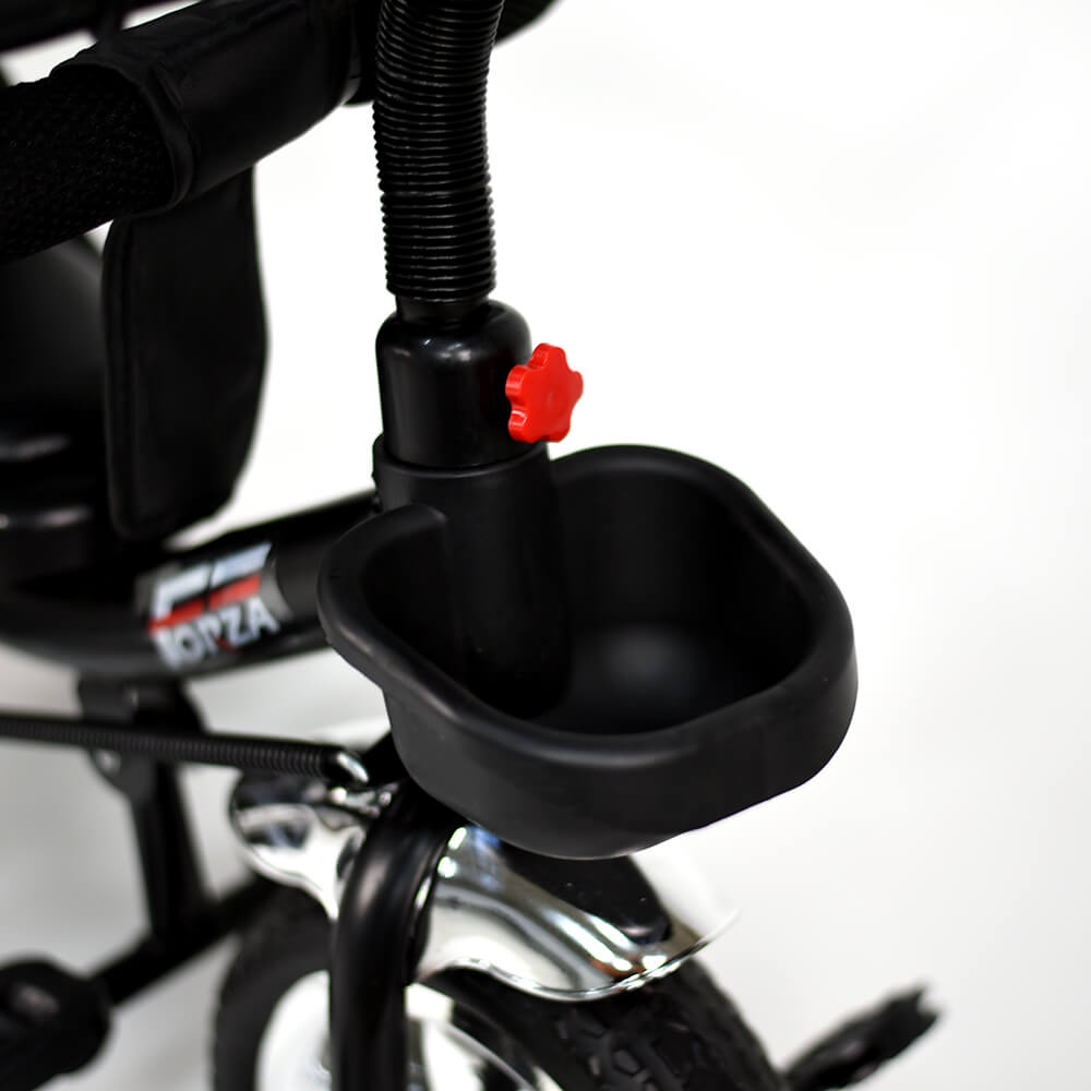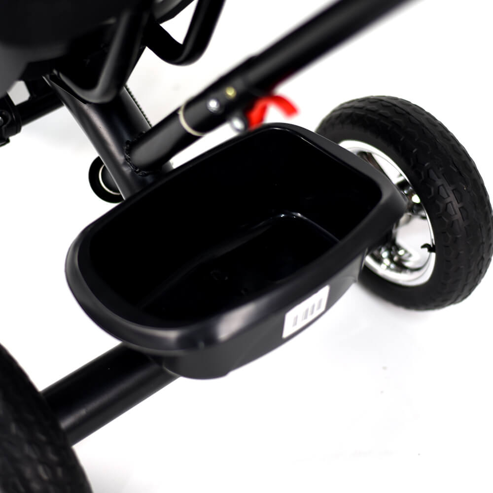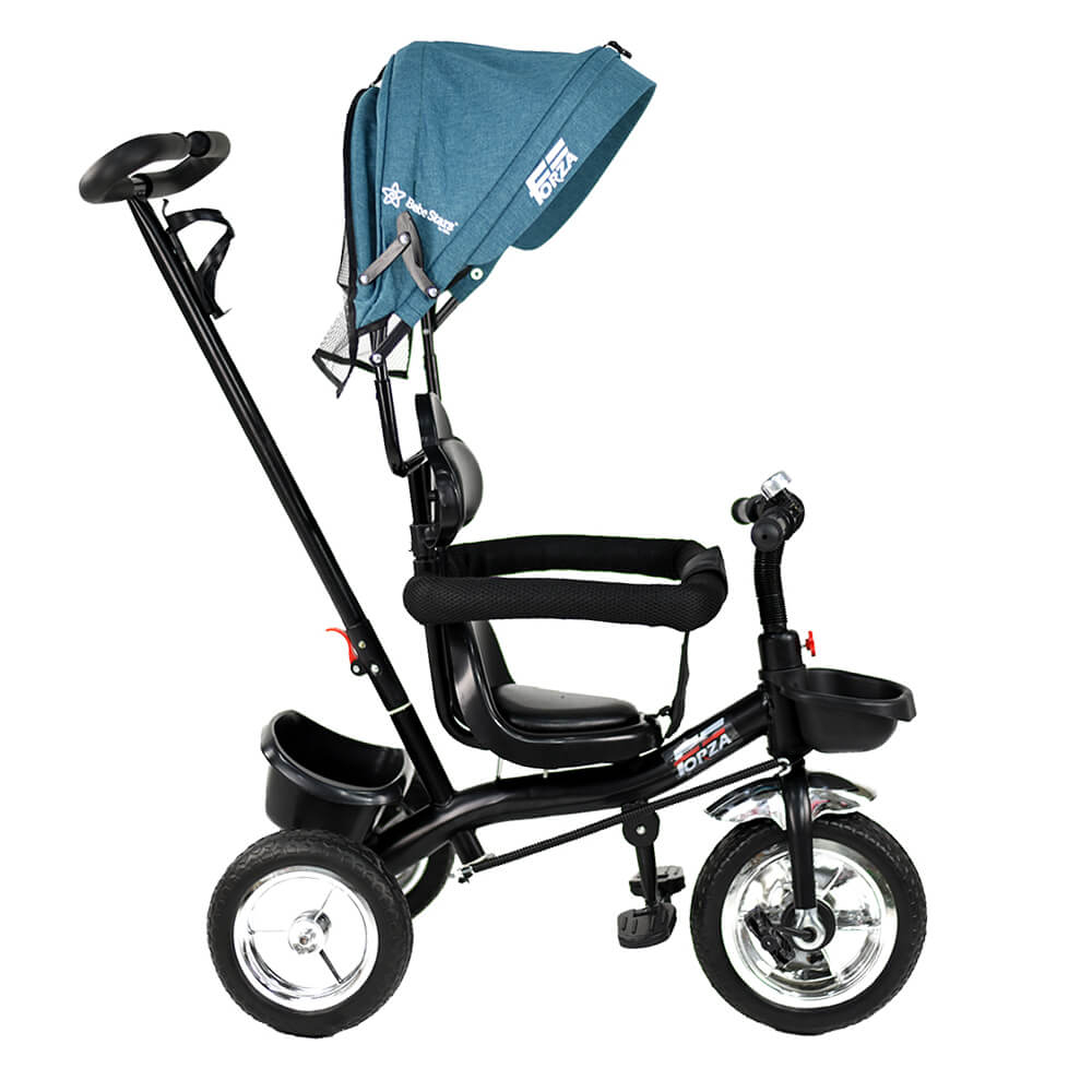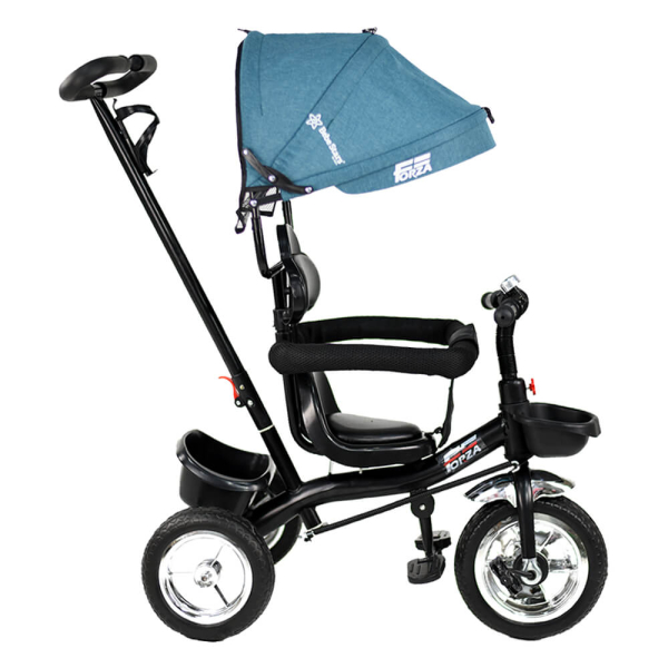 Τρίκυκλο ποδηλατάκι της εταιρείας Bebe Stars σε μαύρο-πετρόλ χρώμα. Κατάλληλο για παιδιά από 12 μηνών με μέγιστο βάρος 25kg και ύψος 80-100εκ. Ο μοντέρνος, ανατομικός σχεδιασμός του σε συνδυασμό με το χαμηλό κέντρο βάρους προσφέρουν μεγάλη σταθερότητα και άνεση. Με άνετο προσκέφαλο και υψηλή υποστήριξη πλάτης για να μην κουράζεται το παιδί. Η αποσπώμενη μπάρα προστασίας ανοίγει για να βάλετε εύκολα το παιδί στο κάθισμα. Το κάθισμα ρυθμίζεται σε 2 θέσεις μήκους ώστε να προσαρμόζεται στην ανάπτυξη του παιδιού και να φτάνουν τα πόδια του στα πετάλια. Έχει αναδιπλούμενα μαρσπιέ για να ακουμπάει το παιδί τα πόδια του όταν δεν κάνει πετάλι. Διαθέτει μεγάλη επεκτεινόμενη και αποσπώμενη κουκούλα με Anti-UV προστασία. Οι 3 ρόδες τους είναι κατασκευασμένες από EVA με την μπροστινή ρόδα να έχει διάμετρο 26εκ. και τις 2 πίσω 20εκ. Μπορείτε να ελέγξετε την πορεία του ποδηλάτου και να το καθοδηγείτε με το χερούλι που υπάρχει στο πίσω μέρος. Περιλαμβάνει ποτηροθήκη για να τοποθετείτε το αγαπημένο σας ρόφημα και κουδουνάκι στο τιμόνι του παιδιού. Μπροστά και πίσω έχει καλάθια για να τοποθετείτε τα ψώνια ή τα απαραίτητα για την βόλτα σας. Αφαιρώντας την λαβή ώθησης γονέα, την κουκούλα και την μπάρα προστασίας μετατρέπεται σε ποδηλατάκι για μεγαλύτερα παιδιά. Κατασκευασμένο με τα Ευρωπαϊκά στάνταρ ασφάλειας ΕΝ 71, CE. Ύψος τιμονιού γονέα: 88cm. Ύψος καθίσματος: 32cm. Κατάλληλο για παιδιά από 12 μηνών με μέγιστο βάρος 25kg και ύψος 80-100εκ. Το προϊόν χρειάζεται συναρμολόγηση.
