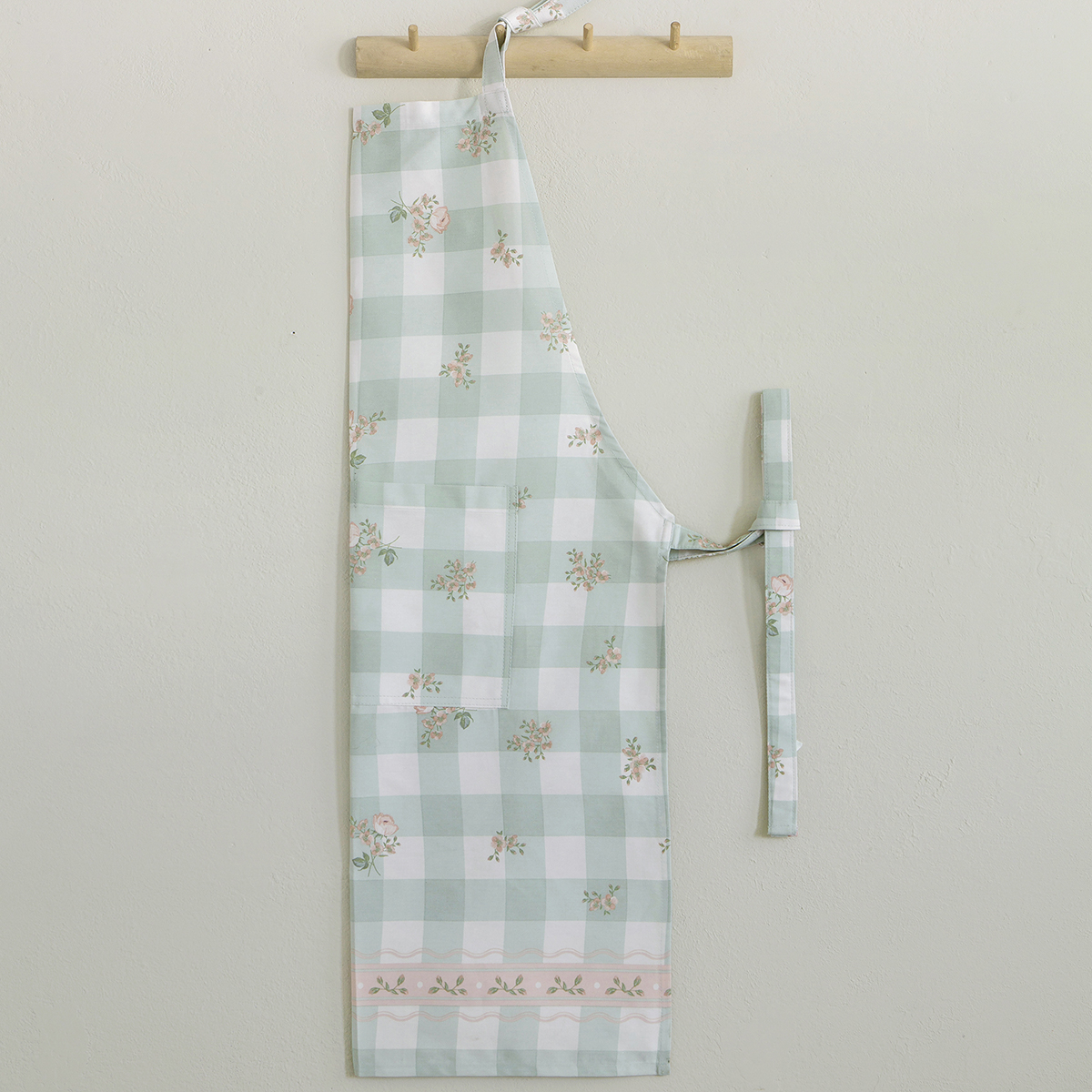 Ποδιά κουζίνας της εταιρείας Nima σε βεραμάν και λευκό χρώμα. Έχει καρό σχέδιο με ροζ φλοράλ λεπτομέρειες. Είναι κατασκευασμένη από 100% βαμβάκι. Διαθέτει τσέπη στο μπροστινό μέρος και δένει με κορδελάκια στην πλάτη. Ιδανική για να αποφύγετε ανεπιθύμητους λεκέδες στην κουζίνα.