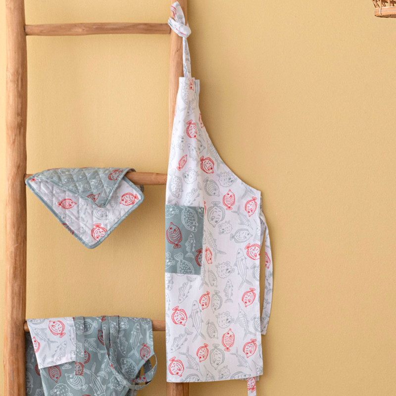 Ποδιά κουζίνας από την εταιρεία Palamaiki με μοντέρνο σχέδιο σε λευκό χρώμα και γκρι-μπορντώ λεπτομέρειες. Είναι κατασκευασμένη από 80% βαμβάκι και 20% polyester 110 κλωστών που την καθιστά ανθεκτική και μαλακή. Διαθέτει τσέπη στο μπροστινό μέρος σε γκρι χρώμα. Συνδυάστε την με τα υπόλοιπα προϊόντα του ίδιου σχεδίου για ένα ολοκληρωμένο αποτέλεσμα.