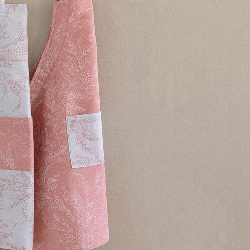 Ποδιά κουζίνας σε ροζ χρώμα, με λευκές λεπτομέρειες και φλοράλ σχέδιο από την εταιρεία Palamaiki. Είναι κατασκευασμένη από 80% βαμβάκι και 20% polyester 110 κλωστών που την καθιστά ανθεκτική και μαλακή. Διαθέτει τσέπη στο μπροστινό μέρος σε μπεζ χρώμα με φλοράλ σχέδιο. Συνδυάστε το με τα υπόλοιπα είδη της ίδιας σειράς για ένα ολοκληρωμένο αποτέλεσμα.