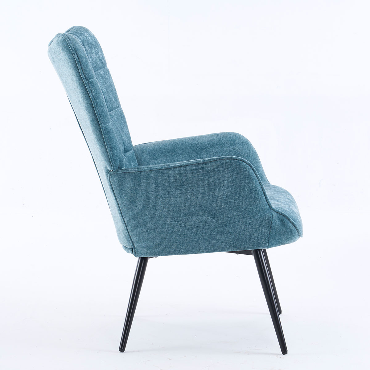 Πολυθρόνα με υποπόδιο που θα ταιριάξει μοναδικά στο σαλόνι ή την κρεβατοκάμαρά σας. Ο σκελετός είναι κατασκευασμένος από μεταλλικό υλικό σε μαύρο χρώμα, ενώ το κάθισμα είναι υφασμάτινο, κατασκευασμένο από 100% polyester σε πετρόλ χρώμα με καπιτονέ σχέδιο στη πλάτη. Διαθέτει γέμιση από αφρού πολυουρεθάνης (PU) για μεγαλύτερη άνεση. Ιδανική πολυθρόνα που θα σας προσφέρει στιγμές χαλάρωσης και ξεκούρασης. *Το προϊόν έρχεται αμοντάριστό και συναρμολογείται βάσει οδηγιών.*