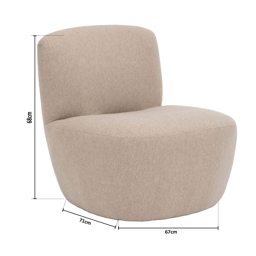 Πολυθρόνα με μοντέρνο και διαχρονικό σχεδιασμό σε μπεζ απόχρωση. Το άνετο κάθισμα και η υποστηρικτική πλάτη προσφέρουν αίσθηση χαλάρωσης, καθιστώντας την ιδανική για διάβασμα, ξεκούραση ή στιγμές ηρεμίας μέσα στην ημέρα. Κατάλληλη για χρήση σε εσωτερικό χώρο. Με πιστοποίηση Oekotex Colorama. Το προϊόν έρχεται μονταρισμένο.