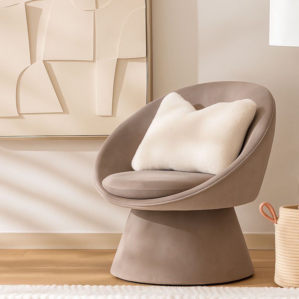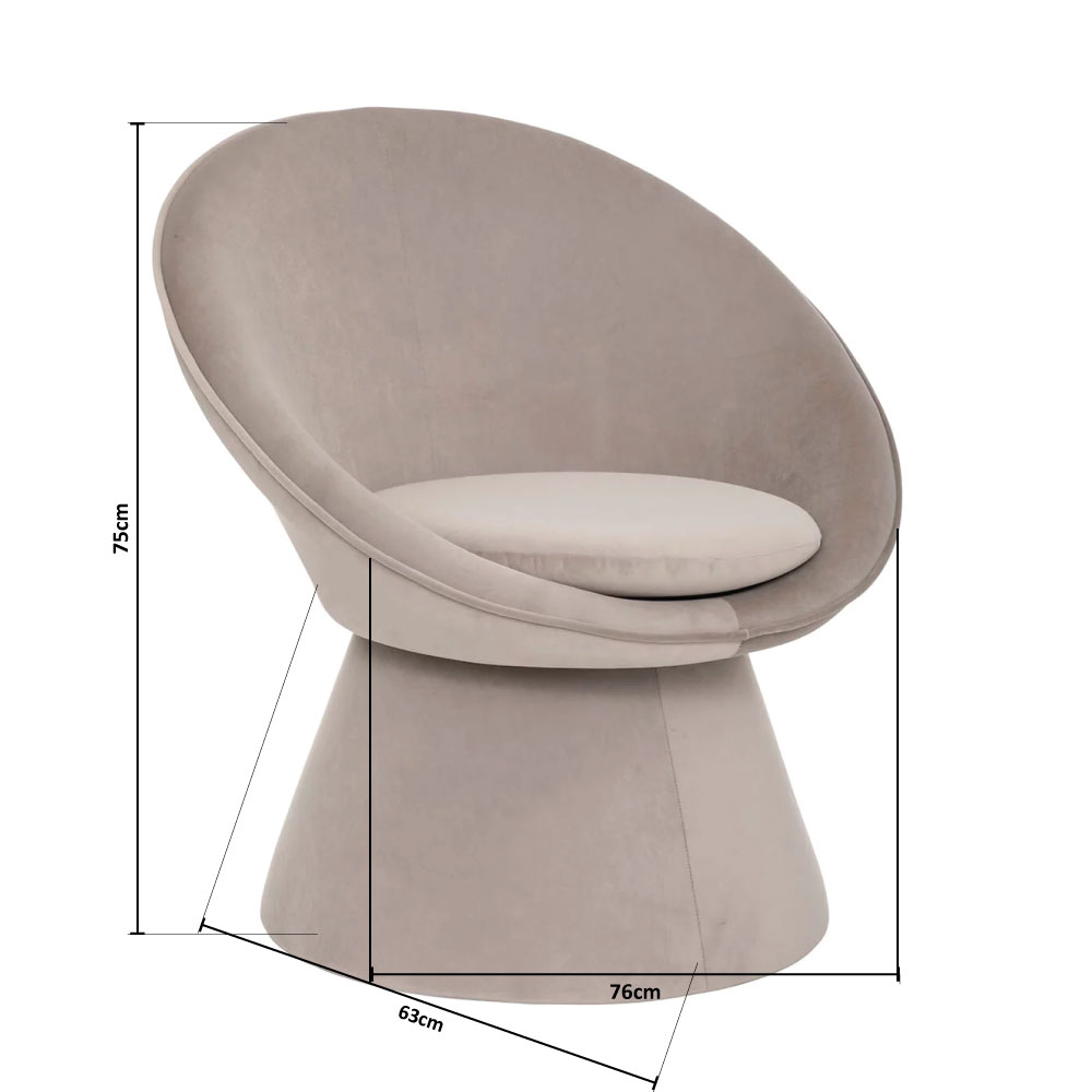 Πολυθρόνα που θα ταιριάξει μοναδικά στο σαλόνι ή την κρεβατοκάμαρά σας. Ο σκελετός είναι κατασκευασμένος από μοριοσανίδα. Το κάθισμα είναι βελούδινο σε γκρι-μπεζ χρώμα, κατασκευασμένο από 100% polyester ενώ η γέμιση είναι από αφρό πολυουρεθάνης. Κατάλληλη για χρήση σε εσωτερικό χώρο. *Το προϊόν έρχεται αμοντάριστό και συναρμολογείται βάσει οδηγιών.*