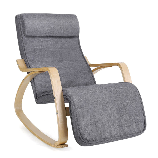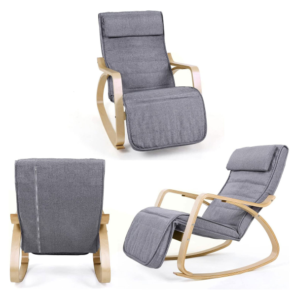 Κουνιστή πολυθρόνα relax με υποπόδιο, σχεδιασμένη για να προσφέρει άνεση και στιγμές χαλάρωσης στην καθημερινότητά σας από την εταιρεία Songmics. Ο σκελετός της είναι σε φυσικό χρώμα ξύλου ενώ το μαξιλάρι έχει γκρι υφασμάτινη επένδυση. Η εργονομική της σχεδίαση προσφέρει σωστή στήριξη στο σώμα, ενώ η σταθερή κατασκευή της εξασφαλίζει ασφάλεια και αντοχή στην καθημερινή χρήση. Ιδανική για να σας προσφέρει στιγμές χαλάρωσης και ξεκούρασης. Το προϊόν έρχεται αμοντάριστο και συναρμολογείται βάσει οδηγιών.