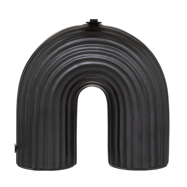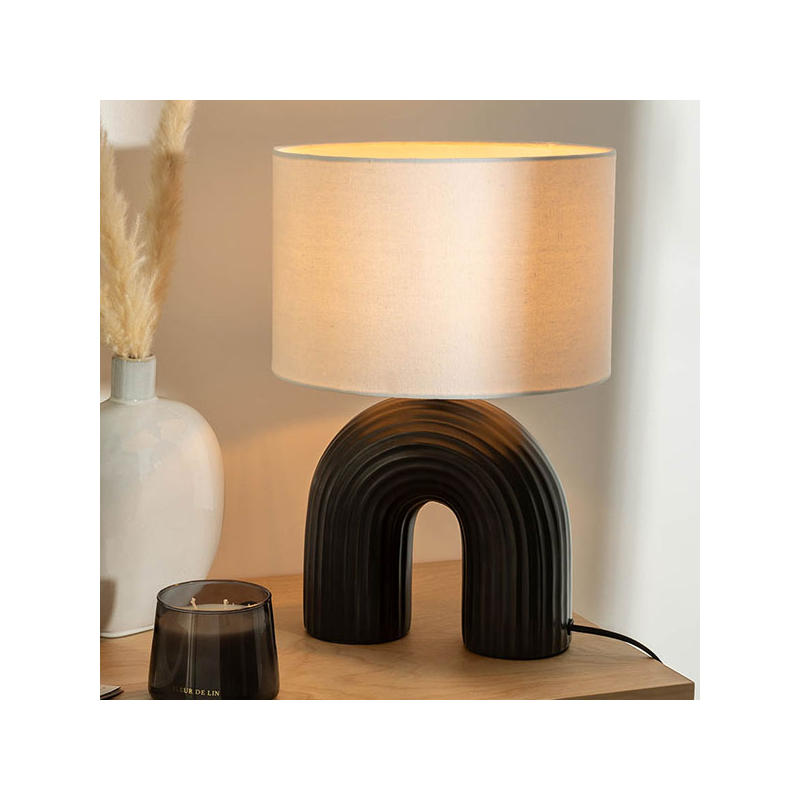 Πορτατίφ με μοντέρνο σχεδιασμό. Η βάση είναι κατασκευασμένη από μαύρο κεραμικό υλικό με ανάγλυφο σχέδιο ενώ το καπέλο είναι υφασμάτινο σε λευκό χρώμα. Διαθέτει καλώδιο με μήκος 120εκ. για παροχή ρεύματος. Ιδανικό για τοποθέτηση στο κομοδίνο σας ή σε όποιο χώρο του σπιτιού επιθυμείτε. Τύπος ντουί: 1xE27 και θέση για 1 λαμπτήρα έως 60W (δεν συμπεριλαμβάνεται).
