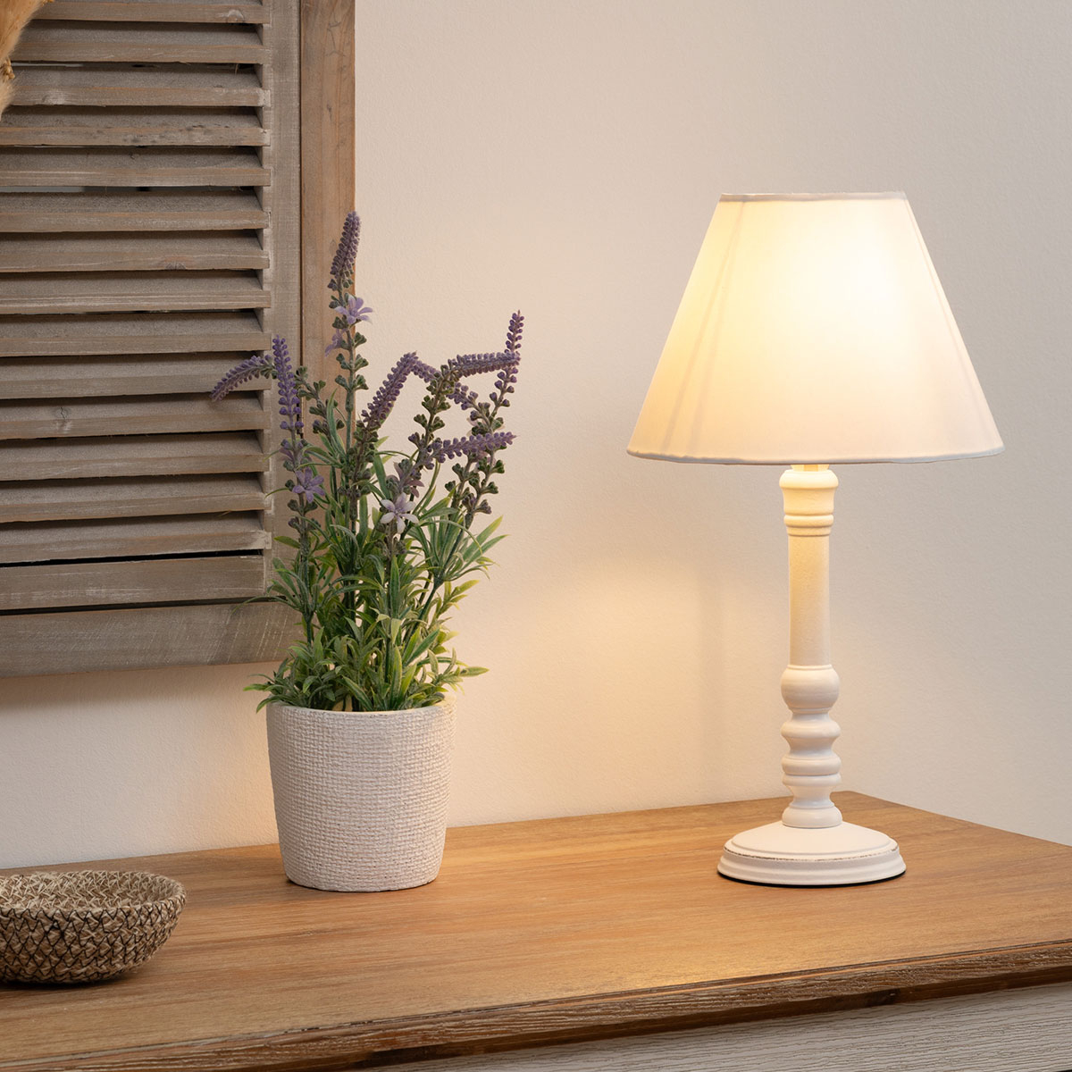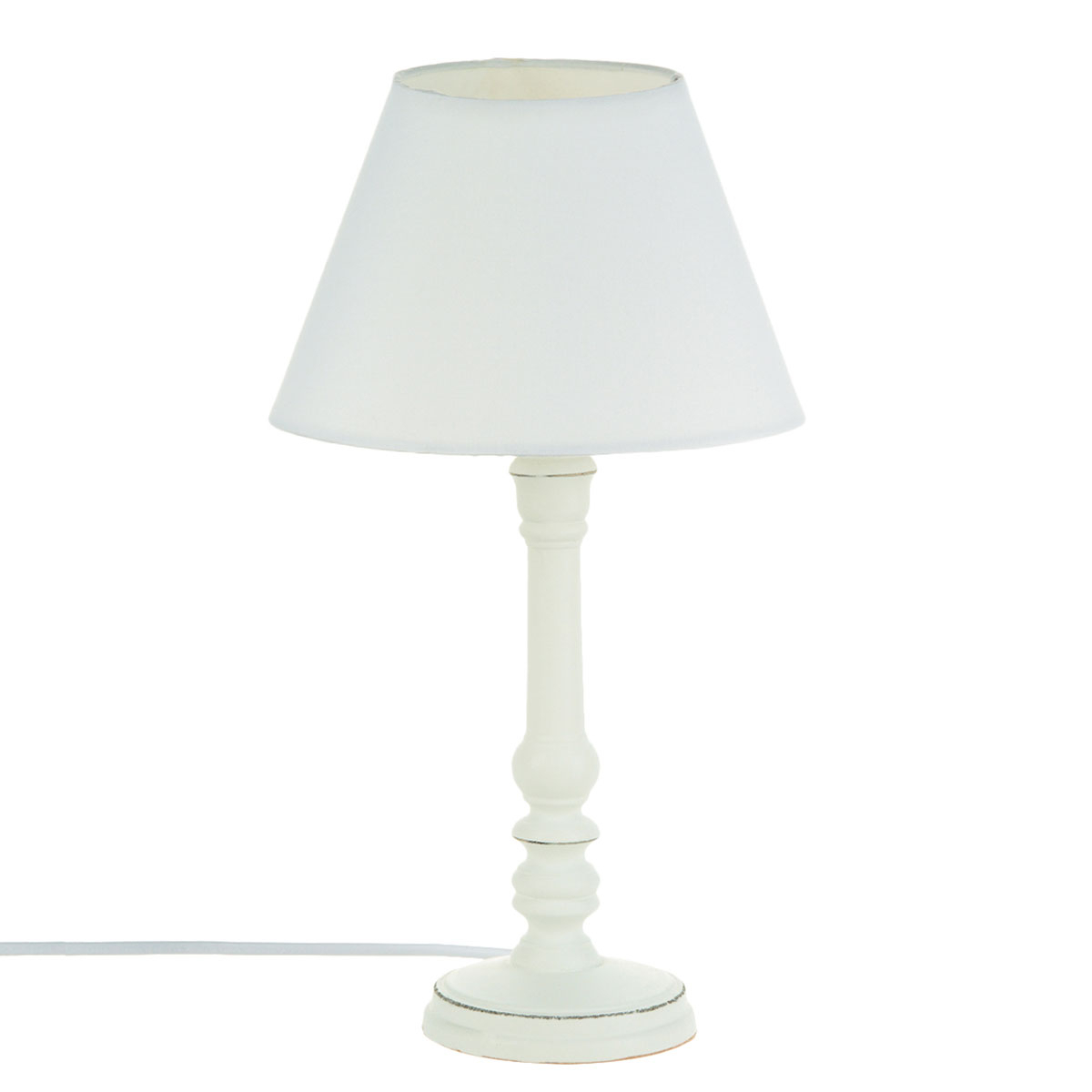 Επιτραπέζιο φωτιστικό με μίνιμαλ σχεδιασμό. Είναι κατασκευασμένο από μεταλλικό υλικό και ξύλο MDF_E0 σε λευκό χρώμα και έχει υφασμάτινο καπέλο. Διαθέτει 150εκ. καλώδιο για παροχή ρεύματος με διακόπτη On/Off. Τύπος ντουί: 1xE14 και θέση για 1 λαμπτήρα έως 25W (δεν συμπεριλαμβάνεται). *Το προϊόν έρχεται αμοντάριστο και συναρμολογείται βάσει οδηγιών.*