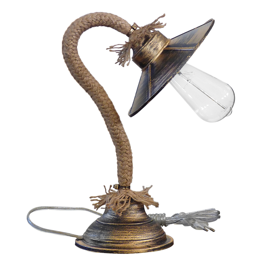 Επιτραπέζιο φωτιστικό της εταιρείας Heronia σε μοντέρνο στυλ. Είναι κατασκευασμένο από πλαστικό υλικό σε μπρονζέ απόχρωση με εφέ παλαίωσης. Φέρει διακοσμητικό μπεζ σχοινί. Το καλώδιο είναι διάφανο και φέρει διακόπτη On/Off. Τύπος ντουί: 1xE27 και θέση για 1 λαμπτήρα **ΑΠΟΚΛΕΙΣΤΙΚΑ LED έως 10W** (δεν συμπεριλαμβάνεται).