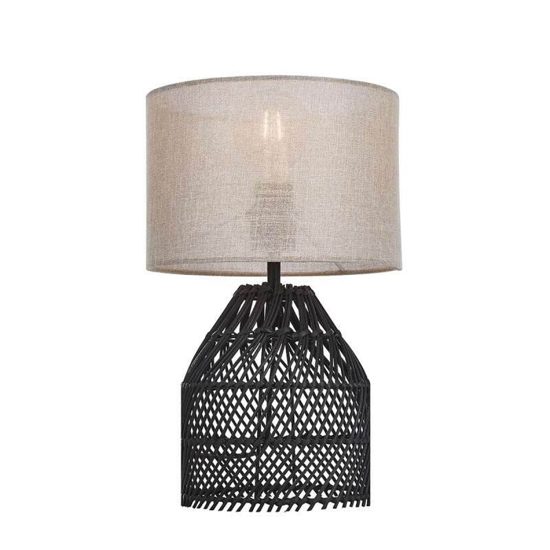 Επιτραπέζιο φωτιστικό με μοντέρνο στυλ, της εταιρείας Viokef. Είναι κατασκευασμένο από ξύλο ρατάν σε μαύρο χρώμα με εκρού υφασμάτινο καπέλο. Διαθέτει καλώδιο για παροχή ρεύματος. Τύπος ντουί: 1xE27 και θέση για 1 λαμπτήρα έως 40W (δεν συμπεριλαμβάνεται). Συνδυάστε το με τα υπόλοιπα είδη της ίδιας συλλογής για ένα ολοκληρωμένο αποτέλεσμα.