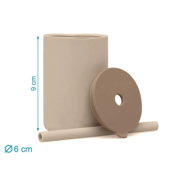 Εκπαιδευτικά ποτήρια χωρητικότητας 180ml την εταιρεία Kiokids σε μπεζ-καφέ χρώμα. Είναι κατασκευασμένα από υψηλής ποιότητας σιλικόνη τροφίμων που είναι ένα μη τοξικό υποαλλεργικό και μαλακό υλικό. Επίσης, δεν απορροφά οσμές ή γεύσεις και το σχήμα και η υφή τους παραμένουν αναλλοίωτα με τη χρήση και την επαφή με άλλες ουσίες. Αντέχει σε ακραίες θερμοκρασίες που κυμαίνονται από -60 βαθμούς έως 260 βαθμούς χωρίς να παραμορφώνεται. Είναι σχεδιασμένο ειδικά για να το κρατάνε εύκολα τα μικρά χεράκια και το καλαμάκι που περιέχει βοηθά στο να πίνει άνετα. Έχει καπάκι για να μην χύνεται το περιεχόμενο. Κατάλληλα για ηλικίες 6 μηνών και άνω.