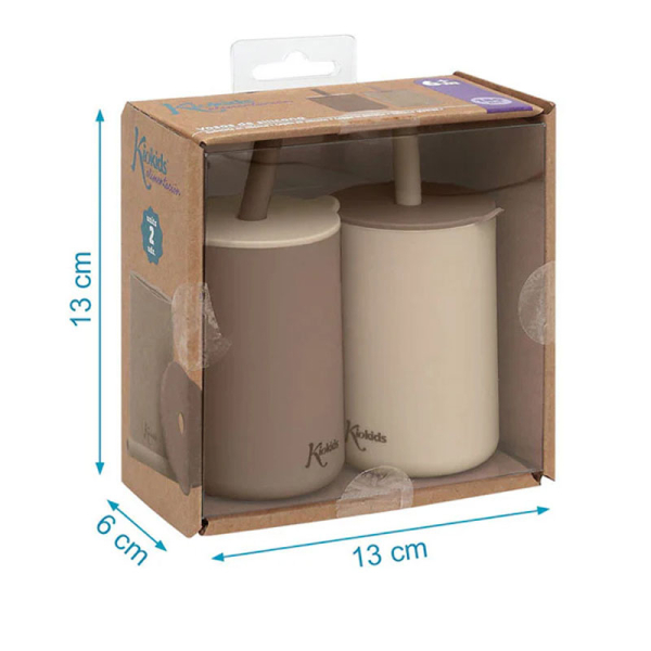 Ποτήρια Εκπαιδευτικά 180ml Με Καλαμάκι (Σετ 2τμχ) Kiokids Μπεζ 4255