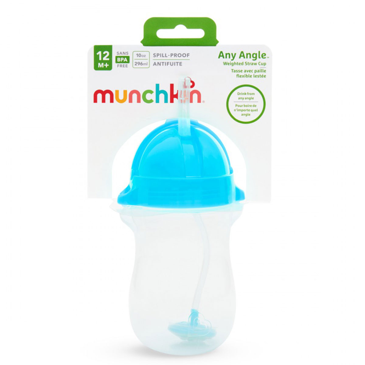 Ποτήρι εκπαιδευτικό με καλαμάκι χωρητικότητας 296ml της εταιρείας Munchkin σε γαλάζιο-διάφανο χρώμα. Είναι κατασκευασμένο από πλαστικό υλικό, χωρίς BPA. Το περιεχόμενο εξέρχεται από το ποτήρι με καλαμάκι με βαρίδι σε οποιαδήποτε γωνία κλίσης. Χάρη στο κουμπωτό καπάκι και τη λειτουργία Click Lock™, το ποτήρι είναι ιδανικό και για χρήση καθ' οδόν. Το καλαμάκι είναι μαλακό και εύκαμπτο για να μην ερεθίζει τα ούλα. Κατάλληλο για ηλικίες άνω των 12 μηνών.