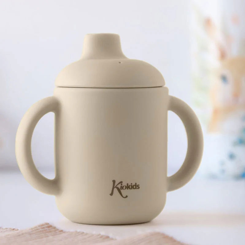 Ποτήρι εκπαιδευτικό χωρητικότητας 120ml από την εταιρεία Kiokids σε μπεζ χρώμα. Είναι κατασκευασμένο από υψηλής ποιότητας σιλικόνη τροφίμων που είναι ένα μη τοξικό, υποαλλεργικό και πολύ ασφαλές υλικό. Είναι πολύ μαλακή και δεν απορροφά οσμές ή γεύσεις. Επίσης, το σχήμα και η υφή τους παραμένουν αναλλοίωτα με τη χρήση και την επαφή με άλλες ουσίες. Οι λαβές είναι ειδικά σχεδιασμένες για μικρά χεράκια και το στόμιο βοηθάει στο να μπορούν να πιούν και να ρουφήξουν ταυτόχρονα. Αντέχει σε ακραίες θερμοκρασίες που κυμαίνονται από -60 βαθμούς έως 260 βαθμούς χωρίς παραμόρφωση. Κατάλληλο για πλυντήριο πιάτων, φούρνο μικροκυμάτων και κατάψυξη. Συνιστάται από ηλικία 4 μηνών και άνω.