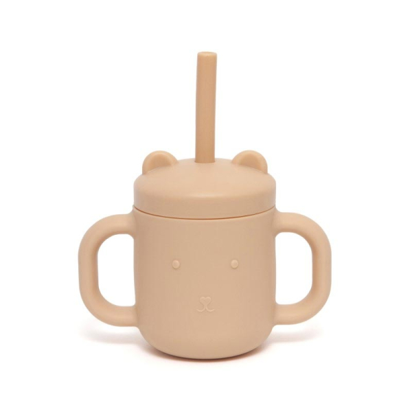 Ποτήρι Εκπαιδευτικό Σιλικόνης 175ml Με Καλαμάκι Petit Monkey PTM-SCLS3 Honey Peach