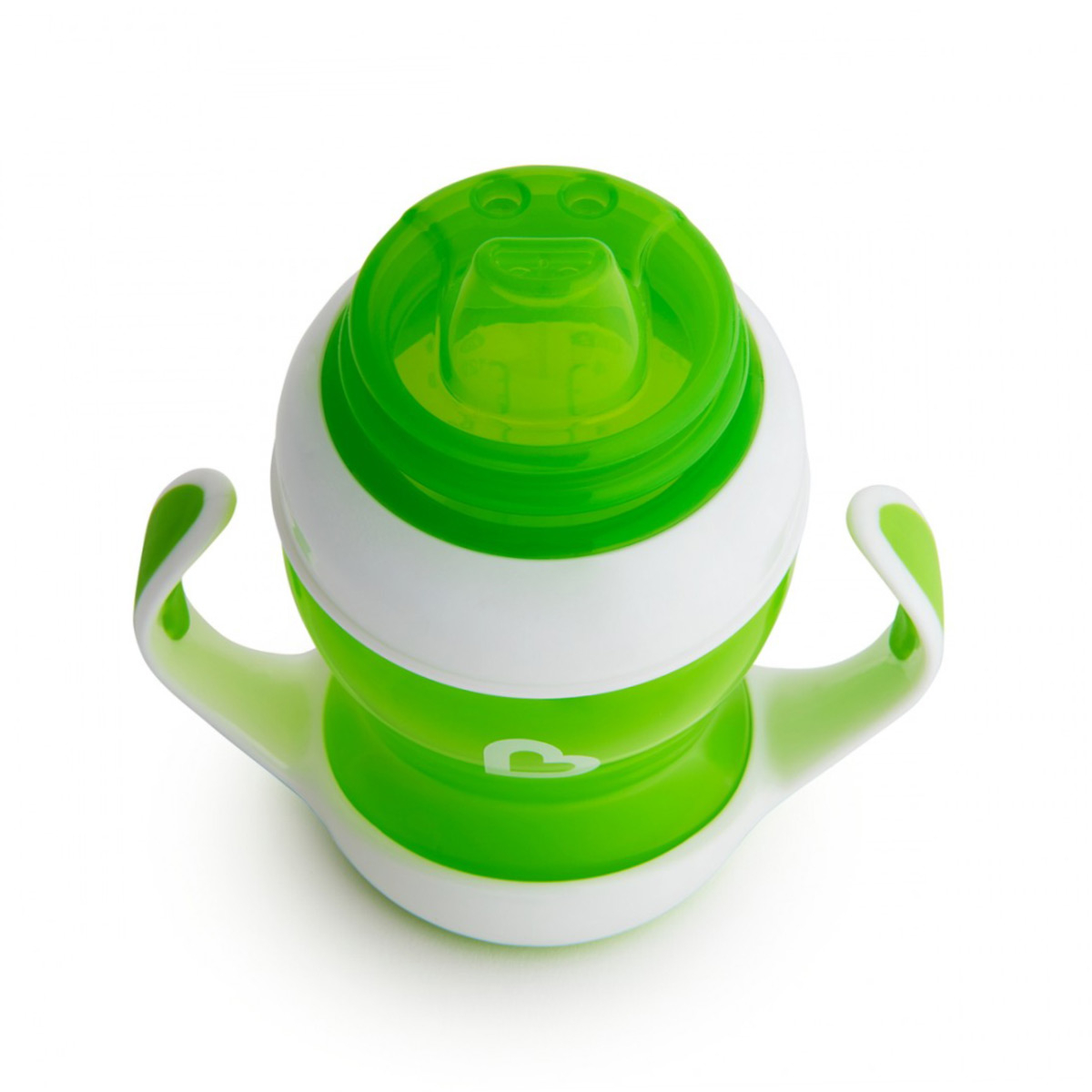 Εκπαιδευτικό ποτήρι χωρητικότητας 118ml της εταιρείας Munchkin σε πράσινο χρώμα. Ιδανικό ποτήρι για την μετάβαση από το μπιμπερό στο κύπελλο. Είναι κατασκευασμένο από πλαστικό υλικό, χωρίς BPA. Διαθέτει εύκαμπτο, μαλακό στόμιο από σιλικόνη και αφαιρούμενες λαβές. Έχει καπάκι για να καλύπτεται το στόμιο και δεν στάζει. Πλένεται και στο πλυντήριο πιάτων. Κατάλληλο για ηλικίες 4+ μηνών.