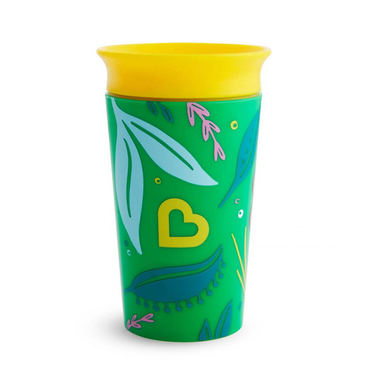 Εκπαιδευτικό ποτήρι χωρητικότητας 266ml της εταιρείας Munchkin. Έχει πράσινο-ροζ-κίτρινο χρώμα με σχέδιο ελέφαντα. Κατασκευασμένο από 100% ανακυκλωμένη και ανακυκλώσιμη συσκευασία χωρίς BPA. Έχει περιμετρικό άκρο 360° για να πίνουν από οποιαδήποτε πλευρά του κυπέλλου, γυρνώντας το κύπελλο και ρουφώντας από το άκρο της βαλβίδας. Το καπάκι σφραγίζει αυτόματα όταν παιδί σταματά να πίνει για την αποφυγή λεκέδων. Καθαρίζεται εύκολα, και τοποθετείται στο πλυντήριο πιάτων, στο πάνω ράφι. Η σειρά Miracle 360° Wild Love, είναι εμπνευσμένη από την προστασία των βιότοπων της άγριας πανίδας, και έχει στόχο να προβάλει στα παιδιά την σημασία της διάδοσης των άγριων ζώων καθώς στην συσκευασία περιλαμβάνονται πληροφορίες σχετικά με αυτό. Κατάλληλο για ηλικίες 12+ Μηνών.