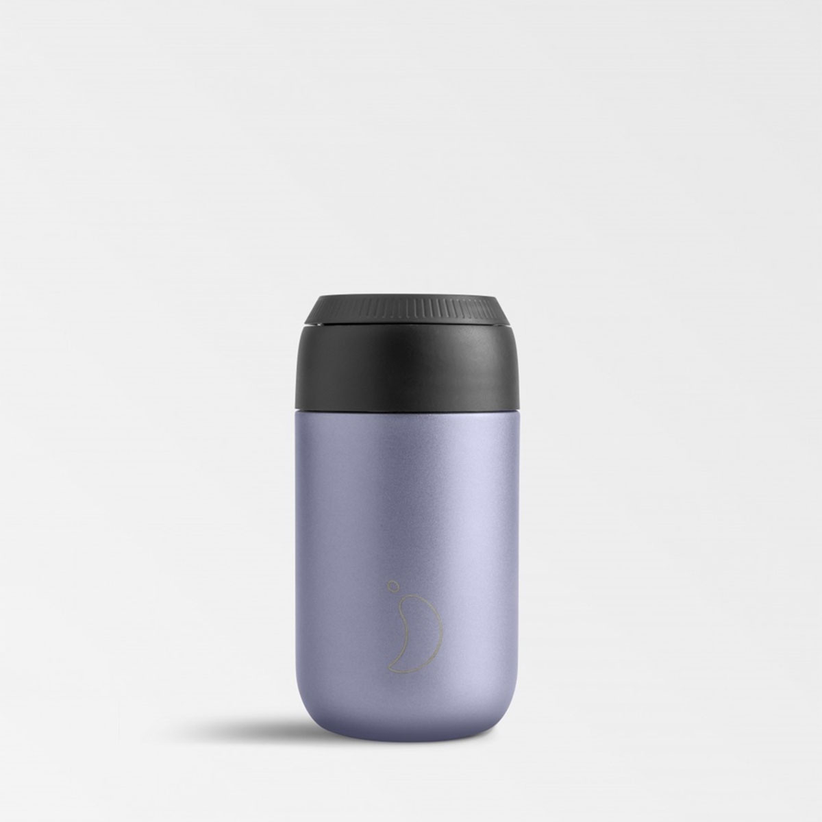 Κούπα θερμός για καφέ, τσάι και ροφήματα χωρητικότητας 340ml σε λιλά μεταλλικό χρώμα της εταιρείας Chilly's. Είναι κατασκευασμένο από ανθεκτικό ανοξείδωτο ατσάλι 304, απαλλαγμένο από BPA. Έχει διπλό τοίχωμα με κενό αέρος που διατηρεί έως και 4 ώρες τα ροφήματα ζεστά ενώ σας επιτρέπει να το κρατάτε χωρίς να καιγόσαστε. Διαθέτει βιδωτό καπάκι με περιστρεφόμενη επιφάνεια για να ανοίγει και κλείνει εύκολα. Εναλλακτικά μπορείτε να το αφήσετε σε ανοιχτή θέση και να τοποθετήσετε καλαμάκι στην στρογγυλή εγκοπή. Είναι ανθεκτικό στην κρούση και διαθέτει αντιολισθητική βάση. Μην το τοποθετείτε στο ψυγείο, στον φούρνο μικροκυμάτων και στο πλυντήριο πιάτων. Δεν συνίσταται για πολύωρη αποθήκευση αλκοολούχων και ανθρακούχων ποτών, χυμών ή γαλακτοκομικών.