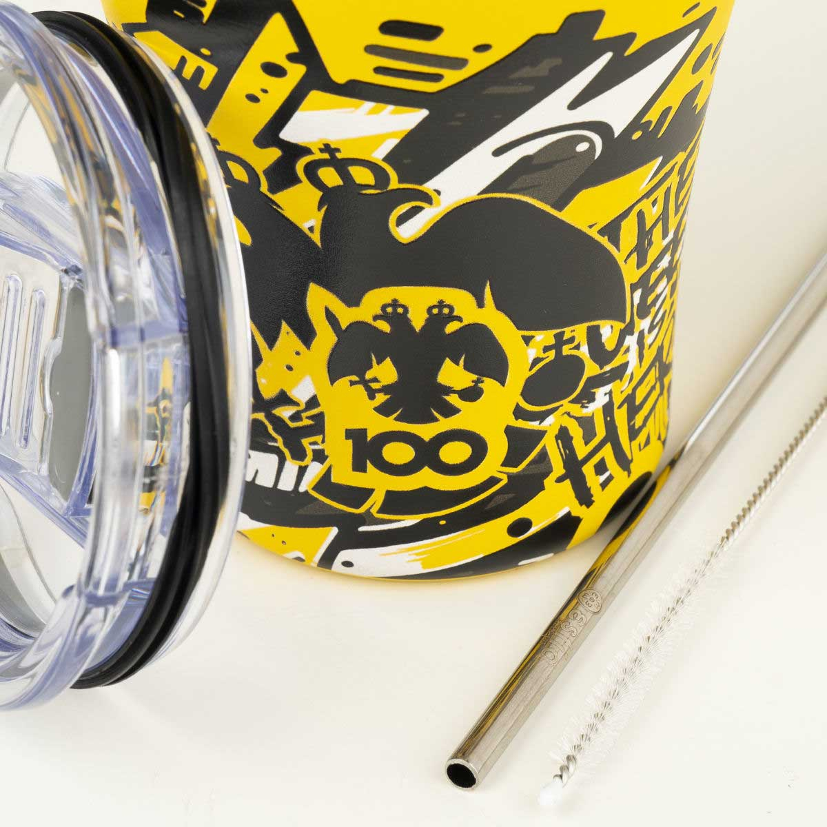 Ποτήρι θερμός 350ml από την εταιρεία εstia σε κίτρινο χρώμα με μαύρες λεπτομέρειες και σχέδιο την αθλητική ομάδα της ΑΕΚ. Είναι κατασκευασμένο από ανοξείδωτο ατσάλι 18/8 που ανταποκρίνεται σε υψηλές απαιτήσεις, εγγυάται μεγαλύτερη αντοχή στη μακροχρόνια χρήση και 100% αναλλοίωτη γεύση των υγρών. Το προϊόν είναι απαλλαγμένο από ουσίες BPA και είναι ασφαλές για επαφή με τρόφιμα και υγρά. H ενισχυμένη μόνωση διπλού τοιχώματος διατηρεί κρύο έως 12 ώρες και ζεστό έως 6 ώρες το ρόφημα, με τη θερμοκρασία του εξωτερικού τοιχώματος να παραμένει σταθερή. Έχει άνετο κράτημα καθώς δεν «ιδρώνει». Το καπάκι είναι 100% στεγανό ώστε να αποφεύγονται οι διαρροές. Το χρώμα τοποθετείται μέσω της τεχνικής powder coating, η οποία προσφέρει ένα ματ αποτέλεσμα και μεγάλη αντοχή στην μακροχρόνια χρήση. Ιδανικό για την βόλτα, το ταξίδι, το γραφείο. Το λογότυπο είναι χαραγμένο πάνω στο προϊόν. Η συσκευασία του είναι κατασκευασμένη από 100% ανακυκλώσιμα υλικά και μπορεί να χρησιμοποιηθεί για πολλαπλές χρήσεις. Στη συσκευασία περιλαμβάνονται ένα ανοξείδωτο καλαμάκι και ένα βουρτσάκι καθαρισμού.