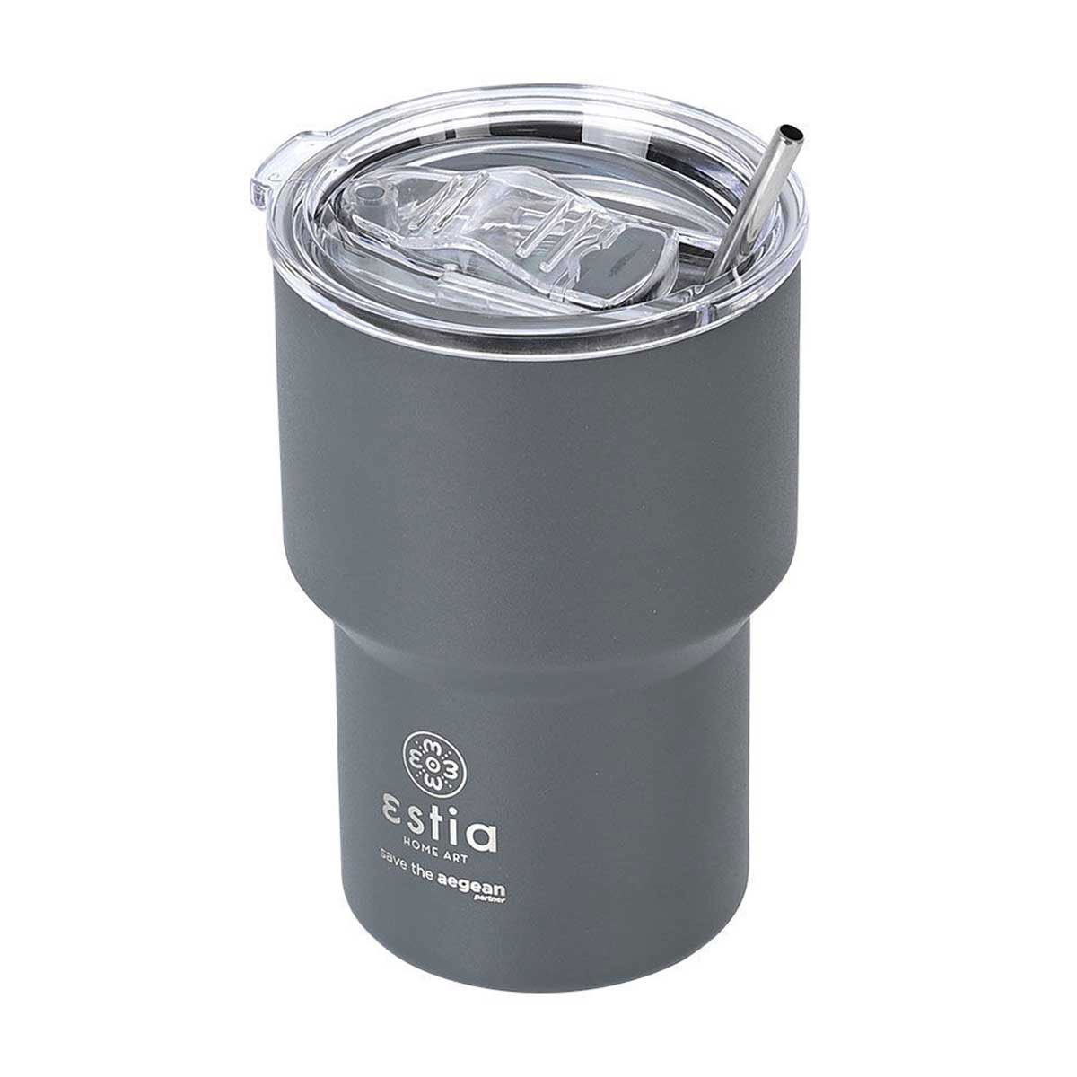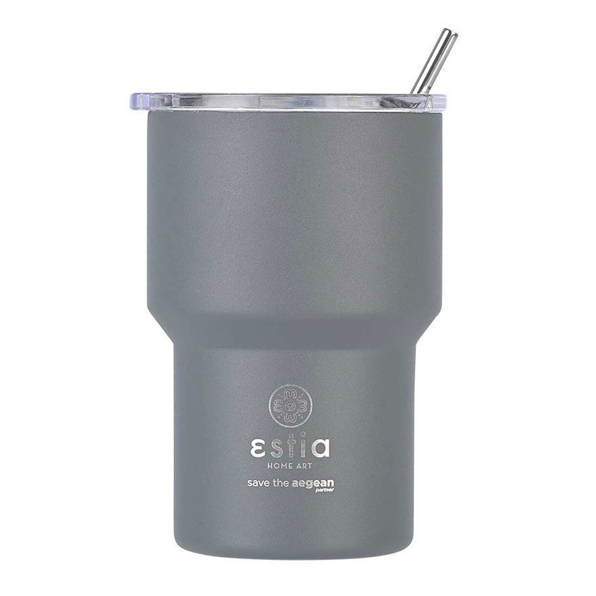 Θερμός της εταιρείας εstia σε γκρι χρώμα από την σειρά "Mug Lite Save The Aegean". Η εταιρεία εstia συνεισφέρει στον οργανισμό "Save The Aegean" με 1% επί των πωλήσεων, για καθαρότερες θάλασσες και ένα καλύτερο αύριο. Άριστη ποιότητα κατασκευής από ανοξείδωτο ατσάλι 18/8 που ανταποκρίνεται σε υψηλές απαιτήσεις, εγγυάται μεγαλύτερη αντοχή στη μακροχρόνια χρήση και 100% αναλλοίωτη γεύση των υγρών. Το προϊόν είναι απαλλαγμένο από ουσίες BPA και είναι ασφαλές για επαφή με τρόφιμα και υγρά. Το διπλό τοίχωμα διατηρεί τα υγρά 12 ώρες κρύα και 6 ώρες ζεστά. Το καπάκι του προσφέρει 100% στεγανότητα στα κρύα ροφήματα και spill proof προστασία στα ζεστά ενώ διαθέτει πρακτική οπή για να τοποθετήσετε το ανοξείδωτο καλαμάκι που περιλαμβάνεται. Το χρώμα τοποθετείται μέσω της αποτελεσματικότερης τεχνικής powder coating, η οποία προσφέρει ένα ματ αποτέλεσμα και μεγάλη αντοχή στην μακροχρόνια χρήση. Ιδανικό για την βόλτα, το ταξίδι, το γραφείο. Χωράει στις ποτηροθήκες των περισσότερων αυτοκινήτων για να το μεταφέρετε εύκολα σε κάθε διαδρομή σας. Το λογότυπο είναι χαραγμένο πάνω στο προϊόν. Η συσκευασία του είναι κατασκευασμένη από 100% ανακυκλώσιμα υλικά και μπορεί να χρησιμοποιηθεί για πολλαπλές χρήσεις. Συμπεριλαμβάνεται ανοξείδωτο καλαμάκι.