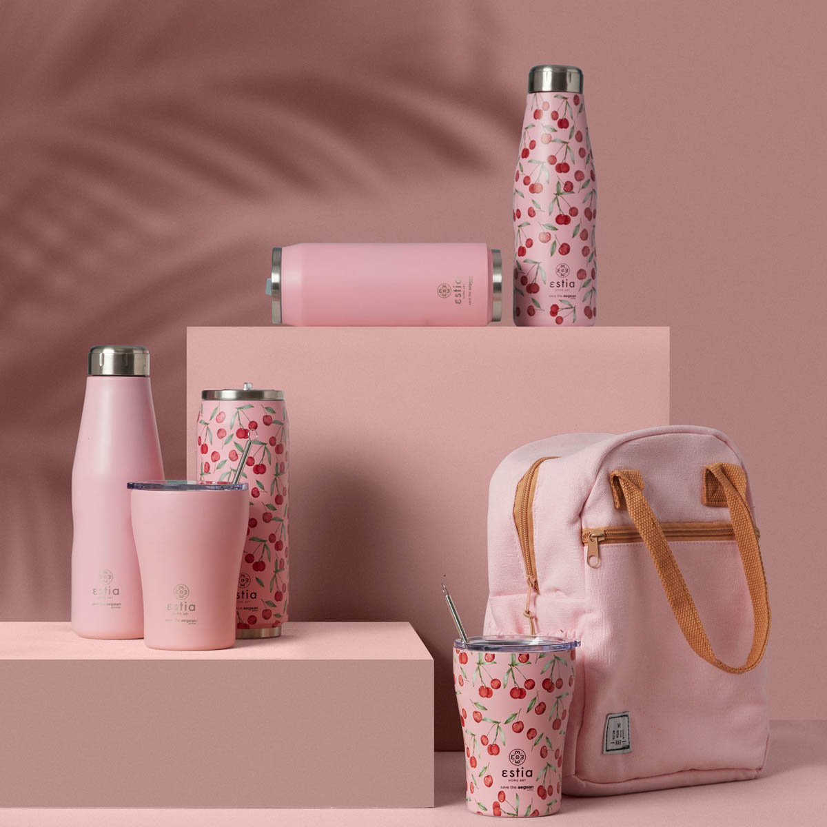 Θερμός της εταιρείας εstia με ροζ φόντο, φούξια-πράσινες λεπτομέρειες και μοντέρνο σχέδιο από την σειρά "Save The Aegean". Η εταιρεία εstia συνεισφέρει στον οργανισμό "Save The Aegean" με 1% επί των πωλήσεων, για καθαρότερες θάλασσες και ένα καλύτερο αύριο. Άριστη ποιότητα κατασκευής από ανοξείδωτο ατσάλι 18/8 που ανταποκρίνεται σε υψηλές απαιτήσεις, εγγυάται μεγαλύτερη αντοχή στη μακροχρόνια χρήση και 100% αναλλοίωτη γεύση των υγρών. Το προϊόν είναι απαλλαγμένο από ουσίες BPA και είναι ασφαλές για επαφή με τρόφιμα και υγρά. Το διπλό τοίχωμα διατηρεί τα υγρά 12 ώρες κρύα και 6 ώρες ζεστά. Έχει μεγάλο εξωτερικό στόμιο που προσφέρει ιδανική ροή και ανθεκτικότητα. Το καπάκι του έχει δακτύλιο σιλικόνης για να ασφαλίζει άριστα και είναι 100% leak proof. Το χρώμα τοποθετείται μέσω της αποτελεσματικότερης τεχνικής powder coating, η οποία προσφέρει ένα σαγρέ αποτέλεσμα και μεγάλη αντοχή στην μακροχρόνια χρήση. Το λογότυπο είναι χαραγμένο πάνω στο προϊόν. Η συσκευασία του είναι κατασκευασμένη από 100% ανακυκλώσιμα υλικά και μπορεί να χρησιμοποιηθεί για πολλαπλές χρήσεις. Συμπεριλαμβάνεται ειδικό βουρτσάκι για να καθαρίζεται εύκολα το εσωτερικό καλαμάκι.