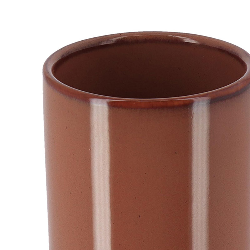 Ποτήρι μπάνιου για την οδοντόβουρτσα και την οδοντόκρεμα. Είναι κατασκευασμένο από κεραμικό υλικό στο χρώμα της τερακότας. Ιδανικό ποτήρι που θα ταιριάξει με όλα τα είδη διακόσμησης. Συνδυάστε το με τα υπόλοιπα είδη της ίδιας σειράς για ένα ολοκληρωμένο αποτέλεσμα στο μπάνιο σας.