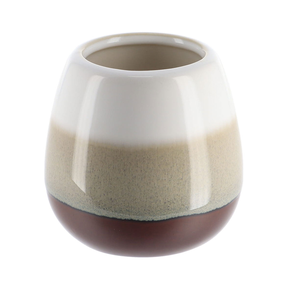 Ποτήρι μπάνιου για την οδοντόβουρτσα και την οδοντόκρεμα. Είναι κατασκευασμένο από κεραμικό υλικό σε μπεζ και καφέ αποχρώσεις και μοντέρνο σχέδιο. Συνδυάστε το με τα υπόλοιπα είδη της ίδιας σειράς για ένα ολοκληρωμένο αποτέλεσμα στο μπάνιο σας.