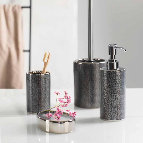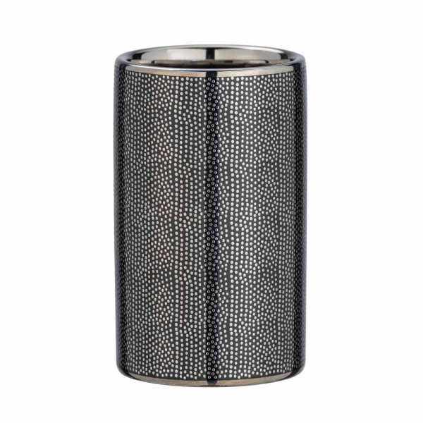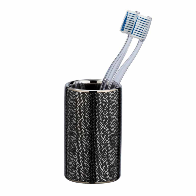 Ποτήρι για οδοντόβουρτσες από την γερμανική εταιρεία Wenko με μοντέρνο σχέδιο. Είναι κατασκευασμένο από υψηλής ποιότητας κεραμικό με ασημί πουά και μαύρη απόχρωση. Συνδυάστε το με τα υπόλοιπα αξεσουάρ του ίδιου σετ για ένα ολοκληρωμένο αποτέλεσμα.