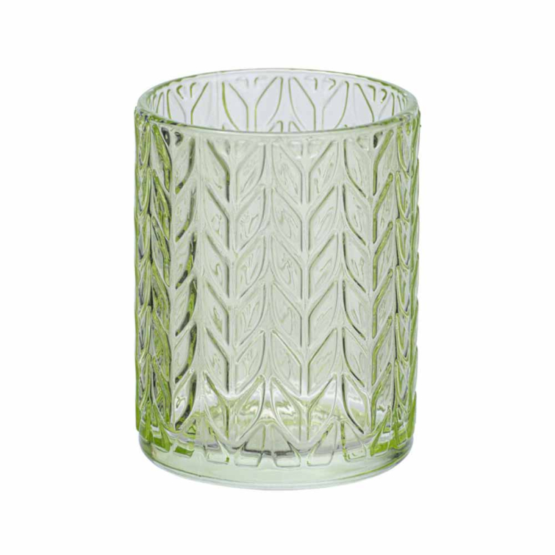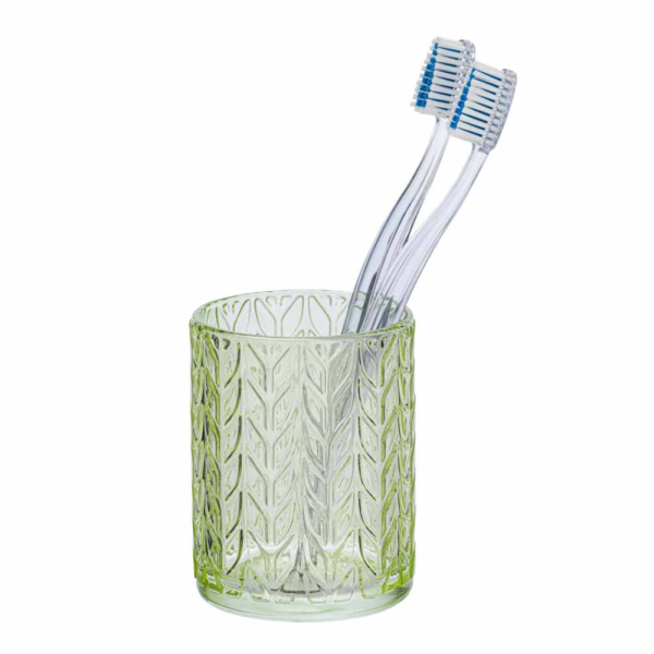 Ποτήρι για οδοντόβουρτσες από τη συλλογή Vetro της γερμανικής εταιρείας Wenko. Είναι γυάλινο με ανάγλυφο σχέδιο και πράσινο χρώμα. Συνδυάστε το με το δοχείο κρεμοσάπουνου για να ολοκληρώσετε το σετ.