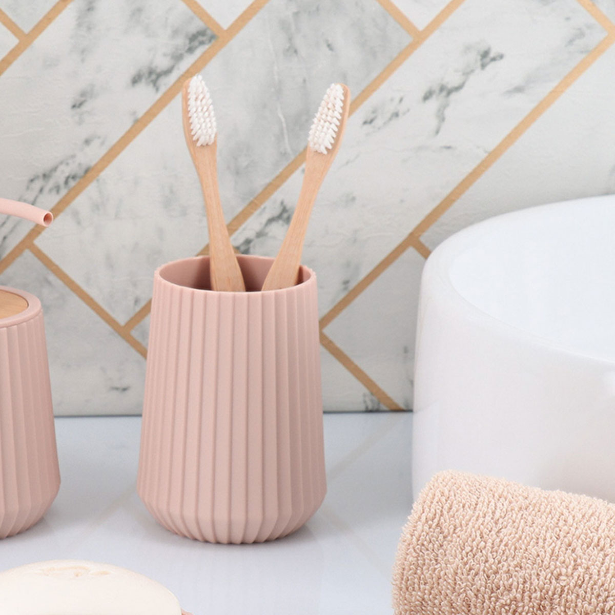 Ποτήρι μπάνιου για την οδοντόβουρτσα και την οδοντόκρεμα με μοντέρνο σχεδιασμό. Είναι κατασκευασμένο από πλαστικό υλικό ABS και AS σε ροζ χρώμα με μοντέρνο σχέδιο. Ιδανικό ποτήρι που θα ταιριάξει με όλα τα είδη διακόσμησης.