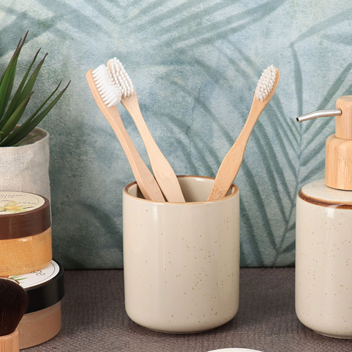 Ποτήρι μπάνιου για την οδοντόβουρτσα και την οδοντόκρεμα σε μπεζ χρώμα. Κατασκευασμένο από κεραμικό υψηλής ποιότητας Gres, που προσφέρει εξαιρετική αντοχή στην υγρασία και στη καθημερινή χρήση. Ιδανικό ποτήρι που θα ταιριάξει με όλα τα είδη διακόσμησης.