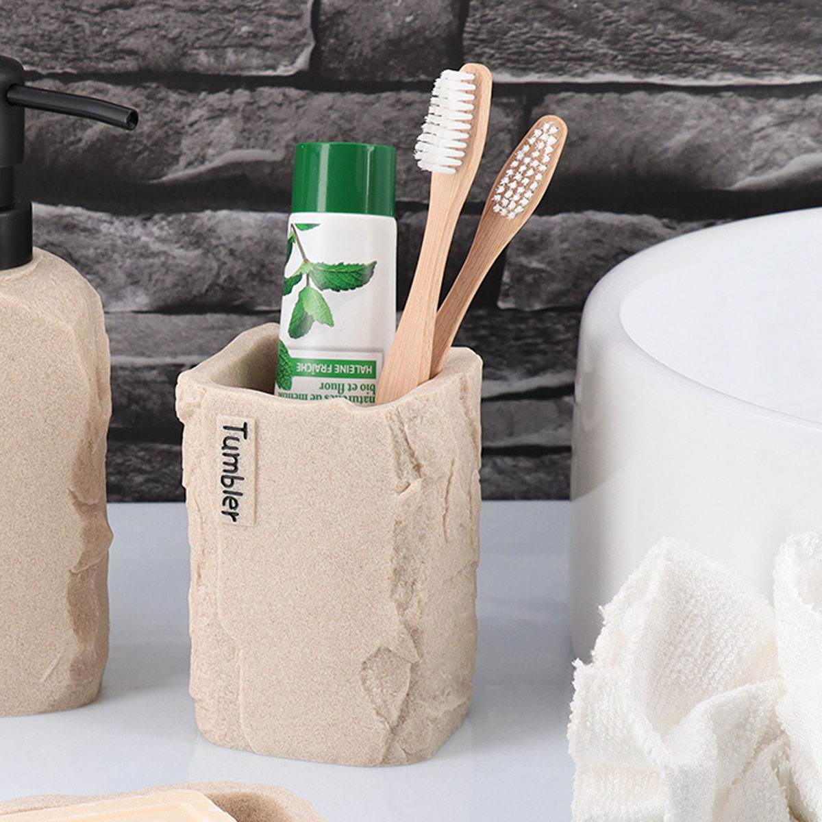 Ποτήρι μπάνιου για την οδοντόβουρτσα και την οδοντόκρεμα με μοντέρνο σχεδιασμό σε εκρού χρώμα. Είναι κατασκευασμένο από polyresin, ένα υψηλής ποιότητας συνθετικό υλικό. Ιδανικό ποτήρι που θα ταιριάξει με όλα τα είδη διακόσμησης.