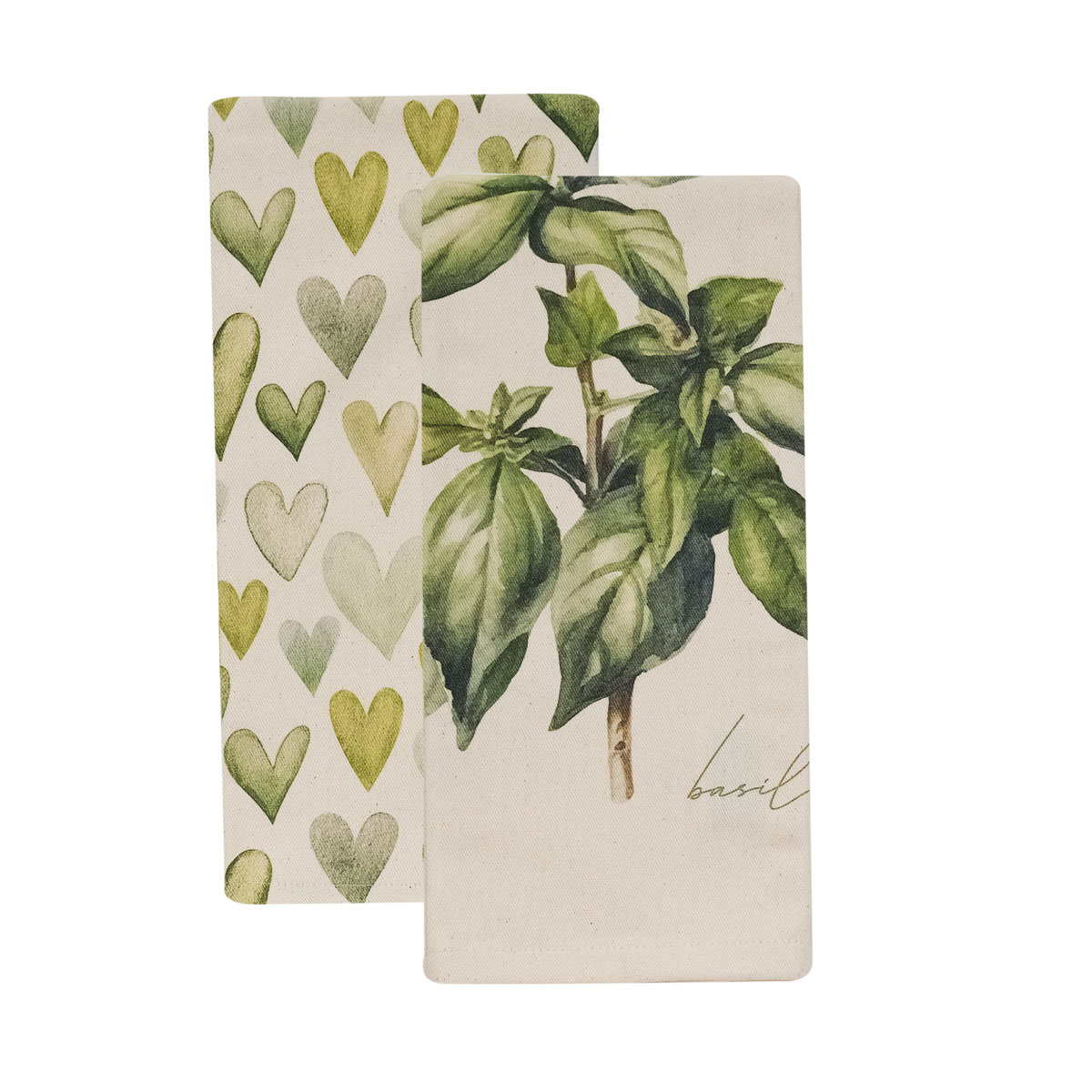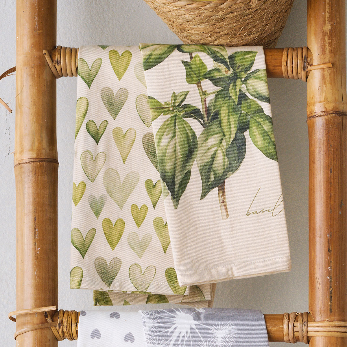 Σετ ποτηρόπανα κουζίνας 2 τεμάχια από την εταιρεία Kentia. Το ένα έχει εκρού φόντο και φλοράλ σχέδιο σε πράσινες αποχρώσεις και το άλλο σχέδιο καρδιές σε εκρού-πράσινο χρώμα. Η σύνθεσή τους είναι 100% βαμβάκι βάρους 200γραμ. /τ. μ. που τα καθιστά απαλά και απορροφητικά. Στεγνώνουν γρήγορα και δεν αφήνουν χνούδια για να μπορείτε εύκολα να στεγνώνετε τα πιάτα και τα ποτήρια σας.