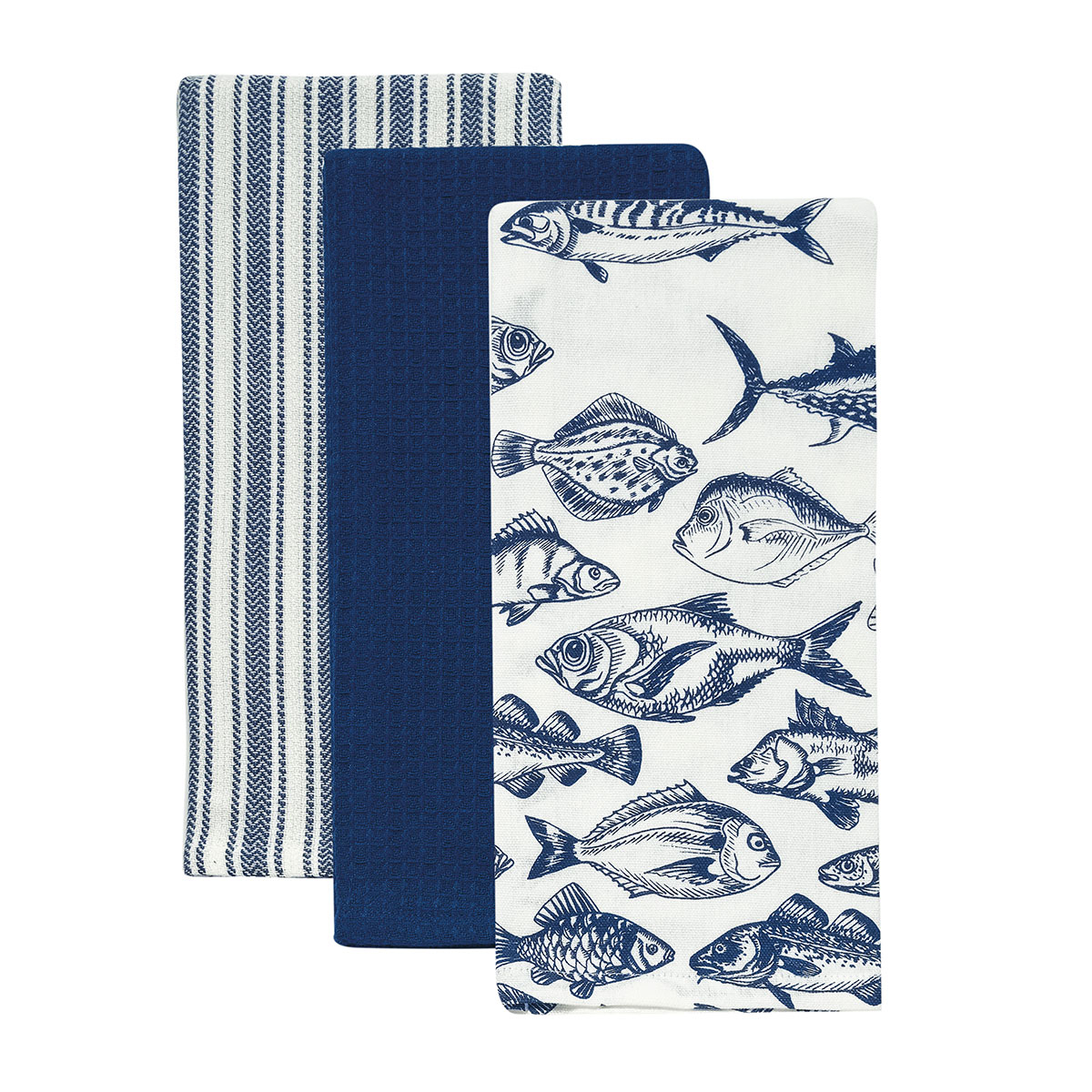 Σετ ποτηρόπανα κουζίνας 3 τεμάχια από την εταιρεία Kentia με διάφορα σχέδια σε εκρού-μπλε αποχρώσεις. Η σύνθεσή τους είναι 100% βαμβάκι βάρους 200γραμ. /τ. μ. που τα καθιστά απαλά και απορροφητικά. Στεγνώνουν γρήγορα και δεν αφήνουν χνούδια για να μπορείτε εύκολα να στεγνώνετε τα πιάτα και τα ποτήρια σας.