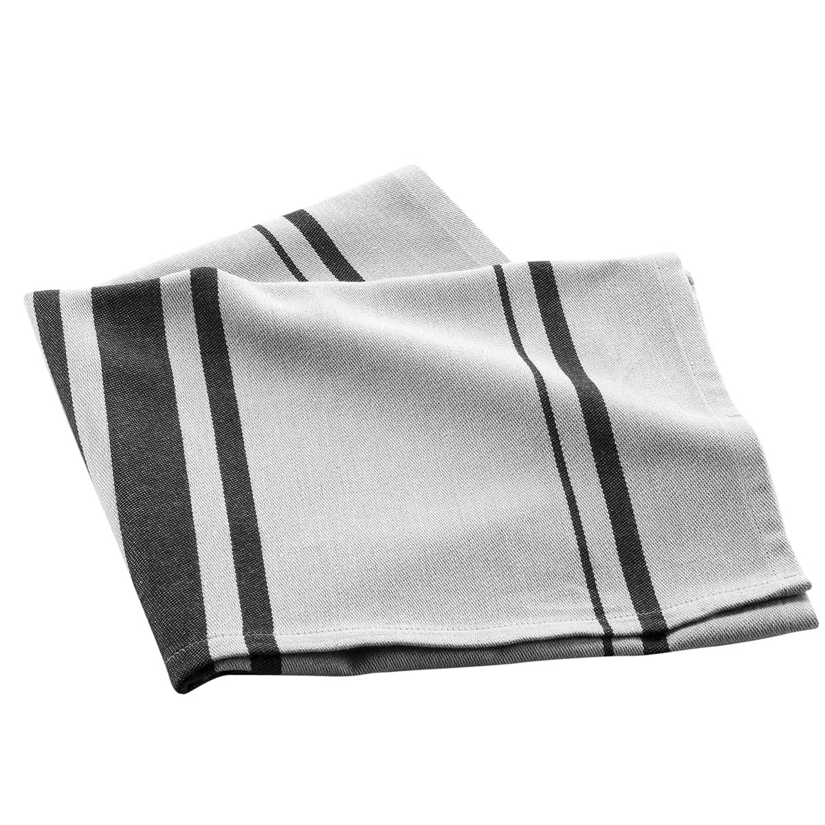 Ποτηρόπανο κουζίνας σε γκρι απόχρωση και ριγέ σχέδιο με μαύρες γραμμές. Το ύφασμα είναι από 100% βαμβάκι. Είναι ιδανικό για να στεγνώσετε τα χέρια σας αλλά και τα πιάτα σας με ευκολία. Συνδυάστε το με τα υπόλοιπα είδη της σειράς για ένα ολοκληρωμένο αποτέλεσμα.