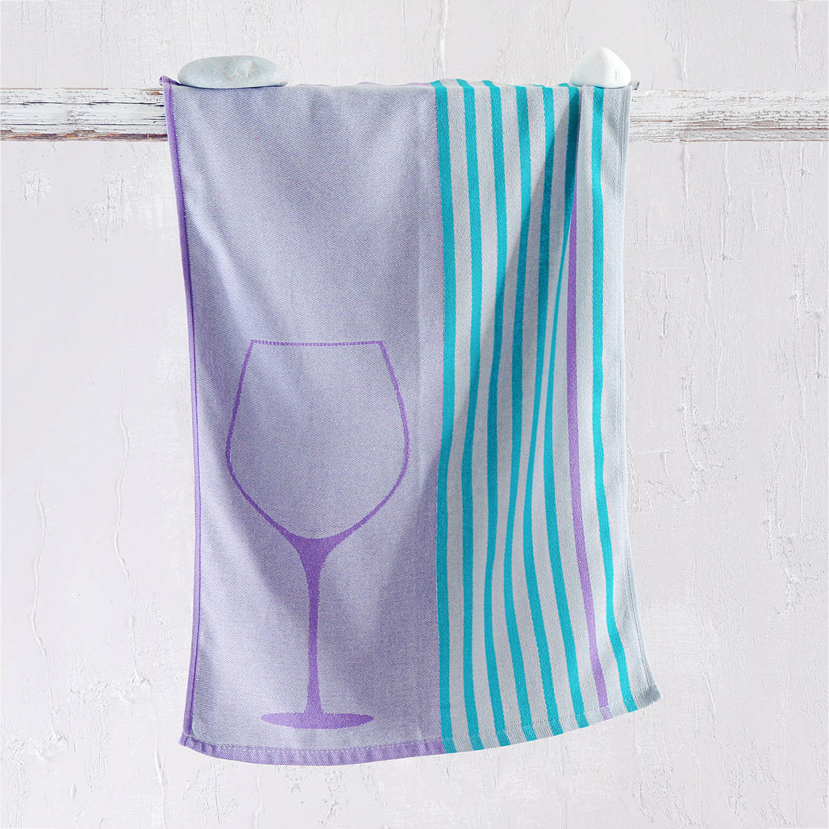 Ποτηρόπανο από την εταιρεία Rythmos σε λιλά χρώμα με τυρκουάζ λεπτομέρειες και μοντέρνο σχέδιο. Είναι κατασκευασμένο από 100% βαμβάκι που το καθιστά ανθεκτικό και απαλό. Είναι εύκολο στο στέγνωμα και πολύ πρακτικό για χρήση στην κουζίνα.