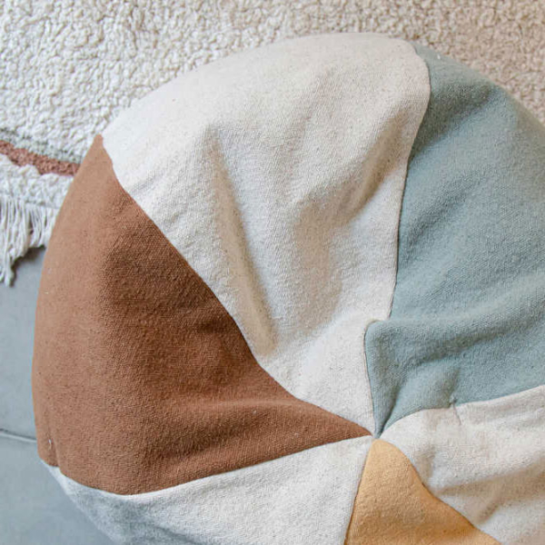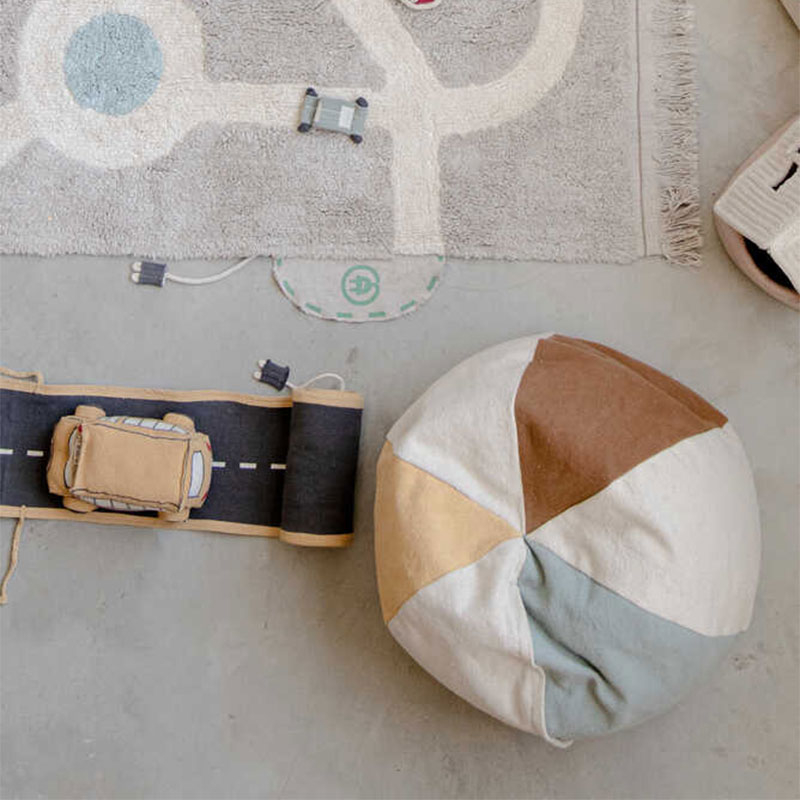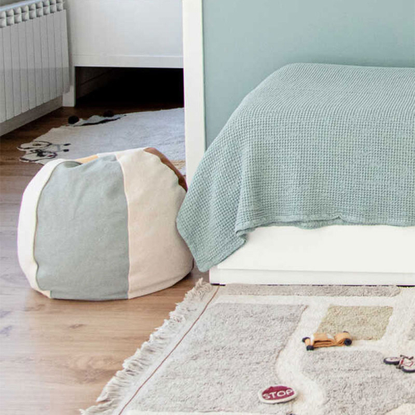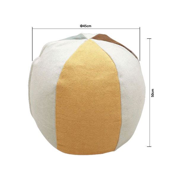 Αυτό το χειροποίητο και όμορφα σχεδιασμένο πουφ δημιουργεί ένα τέλειο κάθισμα στο παιδικό δωμάτιο ή στο σαλόνι σας. Μια απαλή μπάλα τόπι που χρησιμεύει ως αυτοσχέδιο καθιστικό κατά την ώρα του παιχνιδιού. Φτιαγμένο στο χέρι που καθιστά κάθε κομμάτι μοναδικό και με φερμουάρ για να αφαιρείται εύκολα το κάλυμμα. Είναι πολύχρωμο με μη τοξικές βαφές. Το κάλυμμα είναι κατασκευασμένο από 97% βαμβάκι-3% άλλες ίνες και η γέμιση είναι κατασκευασμένη από ένα μείγμα ινών από ανακυκλωμένα μπουκάλια PET και χάντρες πολυστυρολίου. Κατάλληλο για υποδαπέδια θέρμανση. Το κάλυμμα πλένεται εύκολα στο πλυντήριο, ενώ η γέμιση δεν πλένεται. Πληροί όλους τους κανονισμούς ποιότητας και ασφάλειας για παιδιά και έχει πιστοποίηση ISO 9001, ISO 14001, ISO 18001 και AITEX.