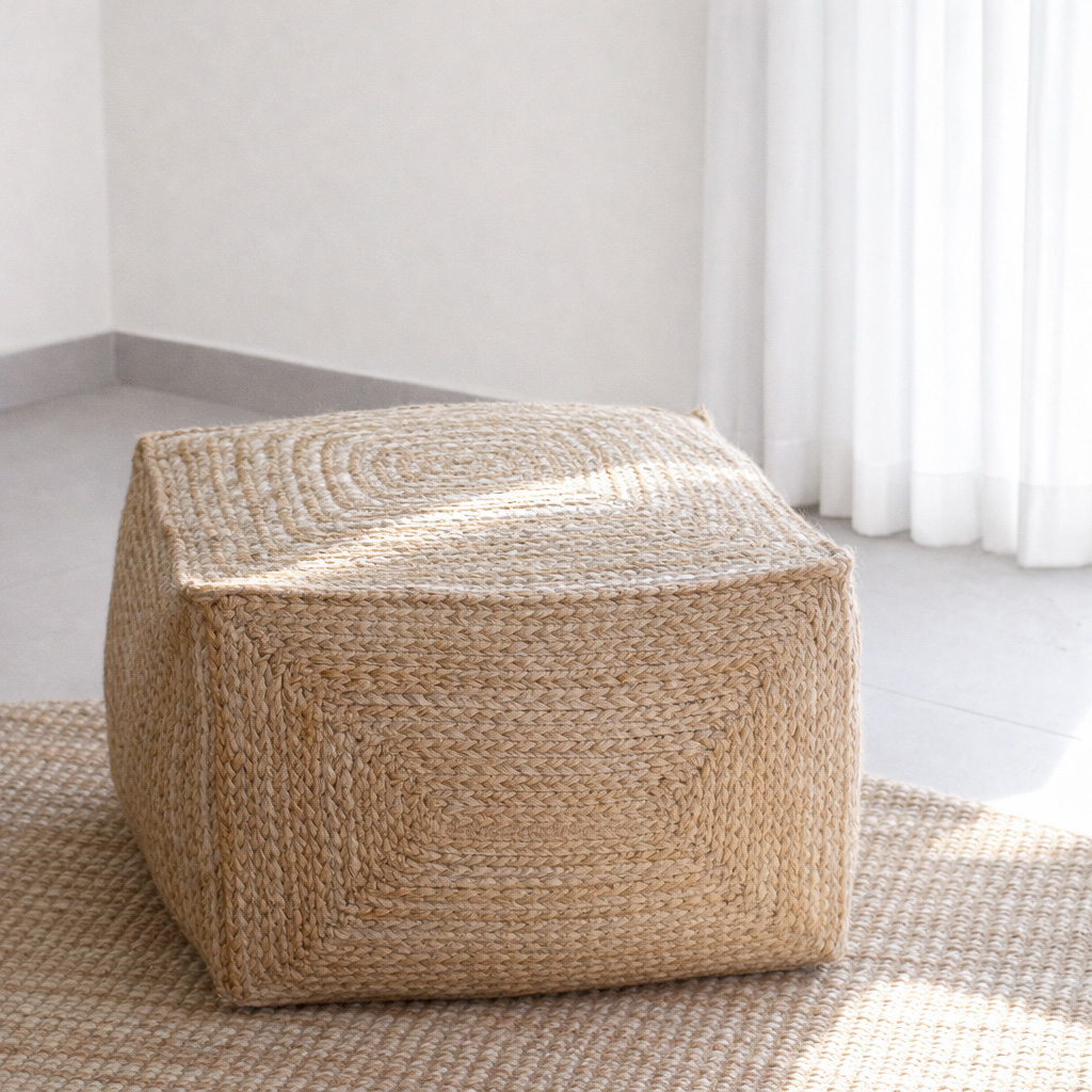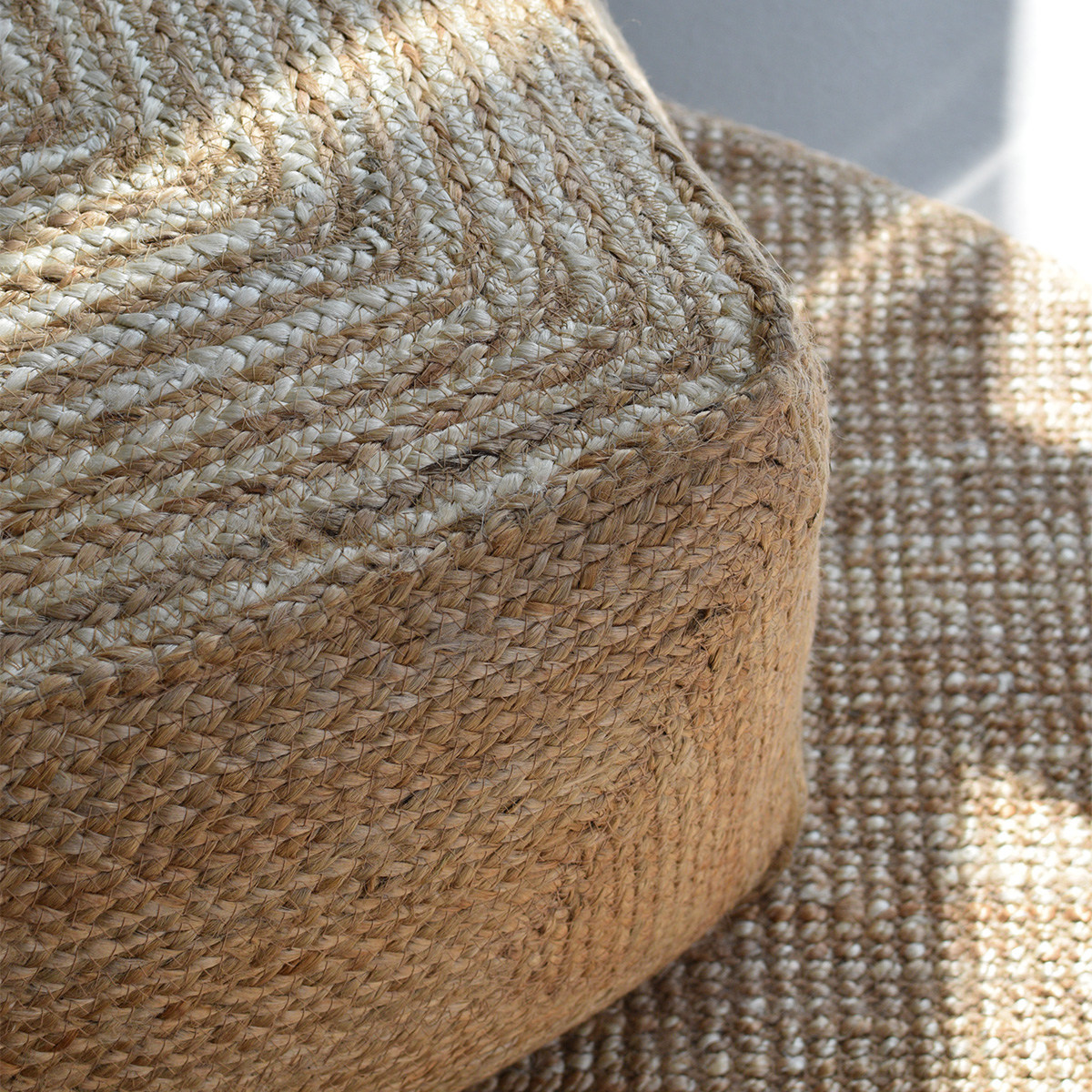 Πουφ από την εταιρεία Ravelia σε μπεζ χρώμα. Το εξωτερικό του κάλυμμα είναι κατασκευασμένο από 100% γιούτα. Το εσωτερικό του περιέχει γέμιση από πολυεστερικά μπιλάκια, προσφέροντας άνεση στο κάθισμα και διατήρηση του σχήματός του με την πάροδο του χρόνου. Προσφέρει μια boho αισθητική που ταιριάζει σε όλα τα στυλ διακόσμησης. Είναι ανοιγόμενο με φερμουάρ, διευκολύνοντας τον καθαρισμό του. Τοποθετήστε το στο σαλόνι, το υπνοδωμάτιο ή ακόμα και σε επαγγελματικούς χώρους για να προσθέσετε στυλ, πρακτικότητα και επιπλέον καθίσματα για εσάς και τους καλεσμένους σας.
