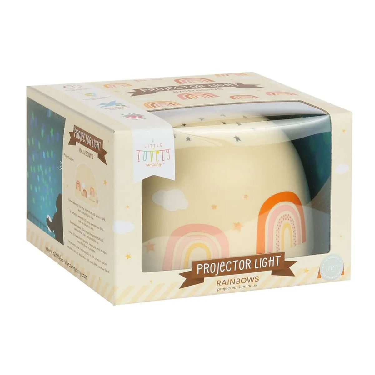 Προτζέκτορας με φως της εταιρείας A Little Lovely Company, που προβάλει αστέρια στο ταβάνι και τους τοίχους του βρεφικού δωματίου. Είναι κατασκευασμένος από πλαστικό ABS με σχέδιο ουράνιων τόξων. Μπορείτε εύκολα να αλλάξετε χρώματα στα αστέρια που προβάλλονται με ένα απλό πάτημα κουμπιού. Οι εναλλαγές είναι μεταξύ πολύχρωμου, μπλε, πορτοκαλί και πράσινου χρώματος. Μπορείτε να το αφήσετε σταθερά αναμμένο ή να επιλέξετε την λειτουργία του εύχρηστου χρονοδιακόπτη που απενεργοποιεί τον προτζέκτορα μετά από 30 λεπτά. Λειτουργεί με 3 μπαταρίες AAA 1,5 V, οι οποίες δεν περιλαμβάνονται.