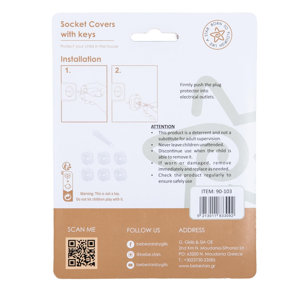 • Τεμάχια: 6 Προστατευτικά Καλύμματα Πρίζας, 1 Κλειδ;i.