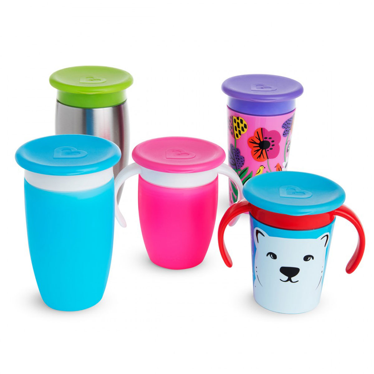 Προστατευτικά καπάκια σετ σε 4 διαφορετικά χρώματα από την εταιρεία Munchkin. Ιδανικά για να προστατεύουν όλα τα κύπελα της σειράς Miracle (Trainer/Sippy/Deco/Steel/14oz) καθώς κρατάνε το στόμιο καθαρό. Καθαρίζονται εύκολα και γρήγορα και είναι χωρίς BPA. Κατάλληλη λύση τις μετακινήσεις και τα ταξίδια. Συνδυάστε τα με τα κύπελα για ένα ολοκληρωμένο αποτέλεσμα.