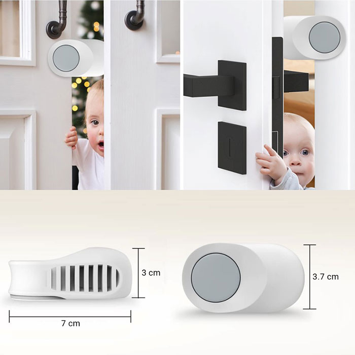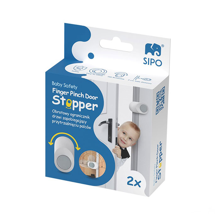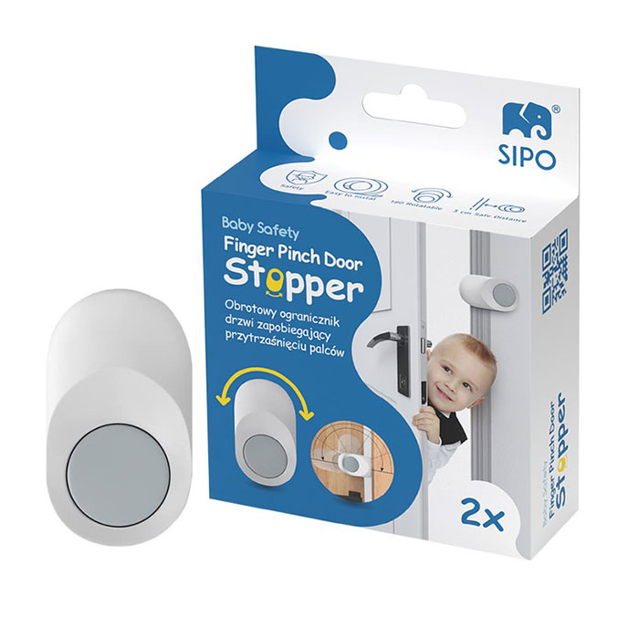 Περιστρεφόμενα προστατευτικά πόρτας από την εταιρεία Sipo σε λευκό χρώμα. Είναι κατασκευασμένα από πλαστικό υλικό μη τοξικό, φιλικό προς το περιβάλλον ABS/TPR. Ο μηχανισμός αυτός τοποθετείται στην πόρτα για να αποφεύγονται οι τραυματισμοί κατά το κλείσιμό της. Είναι ρυθμιζόμενο κατά 180° και είναι ειδικά σχεδιασμένο για να ασφαλίζει εύκολα. Επίσης, έχει εύκολη εγκατάσταση. Η απόσταση ασφαλείας των 3εκ. παρέχει επαρκή προστασία για τα δάχτυλα του παιδιού. Δεν χρειάζονται εργαλεία για την τοποθέτηση , απλώς προετοιμάστε σωστά την επιφάνεια και κολλήστε το προστατευτικό. Το ανθεκτικό υλικό επιτρέπει τη μακροχρόνια χρήση. Δοκιμασμένο σε 15.000 κλεισίματα πόρτας. Πριν την τοποθέτηση καθαρίστε και στεγνώστε καλά την επιφάνεια. Ξεκολλήστε την ταινία από την ασφάλεια και κολλήστε την ασφάλεια στο σημείο που θέλετε. Πιέστε σταθερά για να κολλήσει. Η κόλλα σταθεροποιείται σε περίπου 24 ώρες.