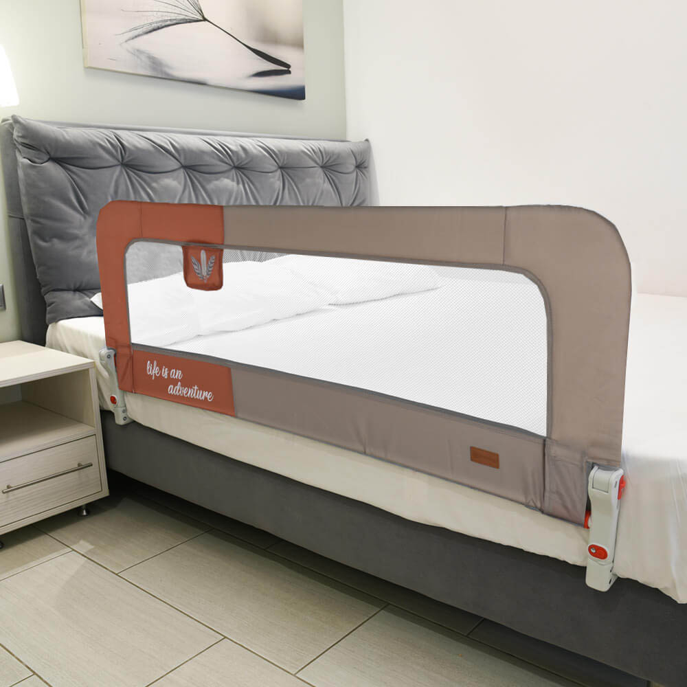 Προστατευτικό κάγκελο κρεβατιού σε μπεζ αποχρώσεις από την εταιρεία Bebe Stars. Είναι απαραίτητο για το παιδί όταν αρχίζει να κοιμάται σε κρεβάτι χωρίς πλευρικά κάγκελα. Είναι ασφαλές, πρακτικό και αποτρέπει την πτώση από το κρεβάτι κατά τη διάρκεια του ύπνου. Στερεώνεται εύκολα κάτω από το στρώμα και ανοίγει μέσω του μηχανισμού αναδίπλωσης για να βγει το παιδί. Μπορείτε να ρυθμίσετε το ύψος του ώστε να ταιριάζει σε κάθε κρεβάτι και στρώμα. Κλείνει και αποθηκεύεται εύκολα. Κατασκευασμένο σύμφωνα με τις Ευρωπαϊκές προδιαγραφές ΕΝ 716, BS7972.