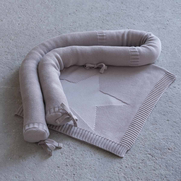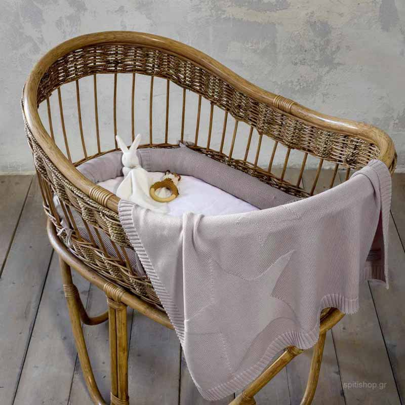 Σετ κουβέρτα αγκαλιάς και προστατευτικό μαξιλάρι από την εταιρεία Nima, ιδανική για κοριτσάκια και αγοράκια. Είναι πλεκτά κατασκευασμένα από 100% βαμβάκι 144 κλωστών σε μπεζ χρώμα. Το μαξιλάρι έχει κορδελάκια για να δένει και μένει σταθερό. Η κουβερτούλα έχει σχέδιο αστεριών.