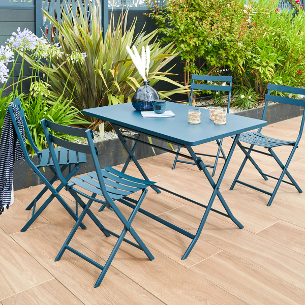 Μεταλλική καρέκλα εξωτερικού χώρου σε πετρόλ απόχρωση, με πρακτικό κάθισμα και εύκολη αναδίπλωση για να τις φυλάτε και να χρησιμοποιείτε ανά πάσα ώρα και στιγμή όσες καρέκλες επιθυμείτε ανάλογα με τον αριθμό των καλεσμένων σας. Κατασκευασμένη από υψηλής ποιότητας, ανθεκτικά υλικά και με ειδική επεξεργασία που αποτρέπει την οξείδωση, τη διάβρωση και την σκουριά. Το χρώμα της δεν αλλοιώνεται από την επαφή με τον ήλιο και αυτό την καθιστά ιδανική για το μπαλκόνι, τον κήπο ή την βεράντα. Συνδυάστε την με το τραπέζι του ίδιου χρώματος για να δημιουργήσετε ένα αρμονικό αποτέλεσμα.