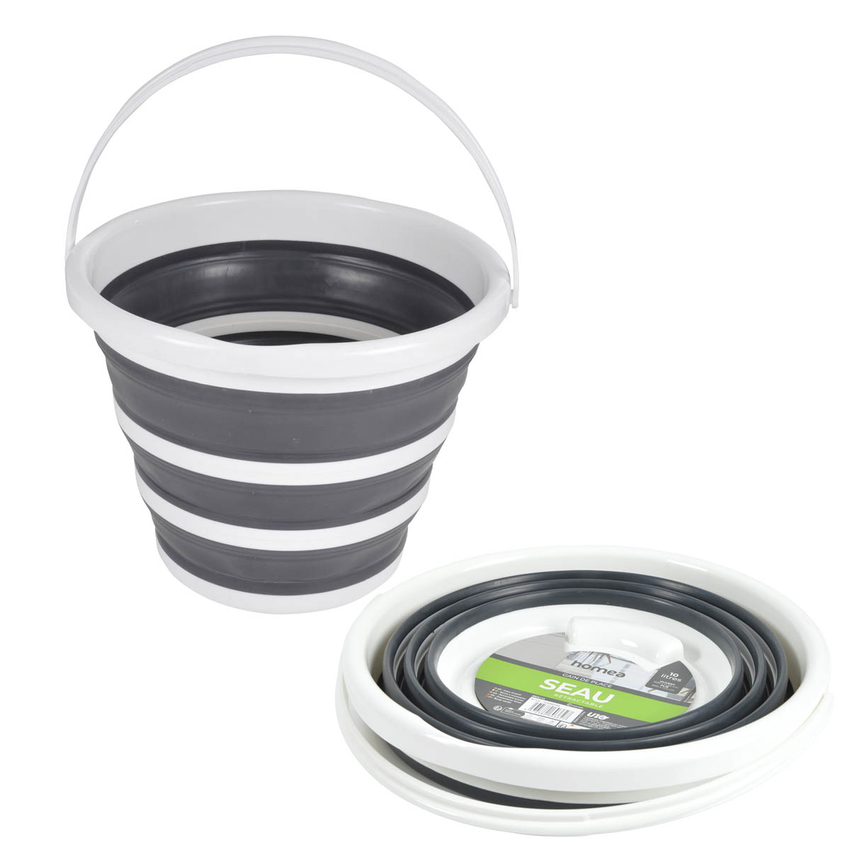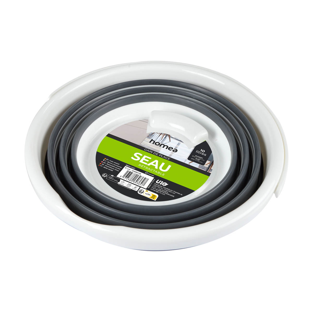 Λεκάνη πλυσίματος από σιλικόνη και πλαστικό υλικό σε γκρι και λευκό χρώμα. Είναι πτυσσόμενη με 5cm ύψος όταν είναι κλειστή, για να αποθηκεύεται εύκολα χωρίς να πιάνει χώρο. Ιδανική για την μεταφορά και το άπλωμα των ρούχων. Χωρητικότητα 10L.