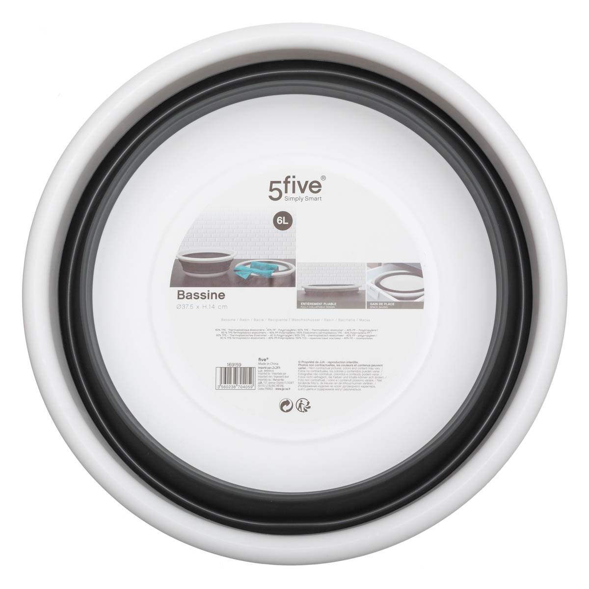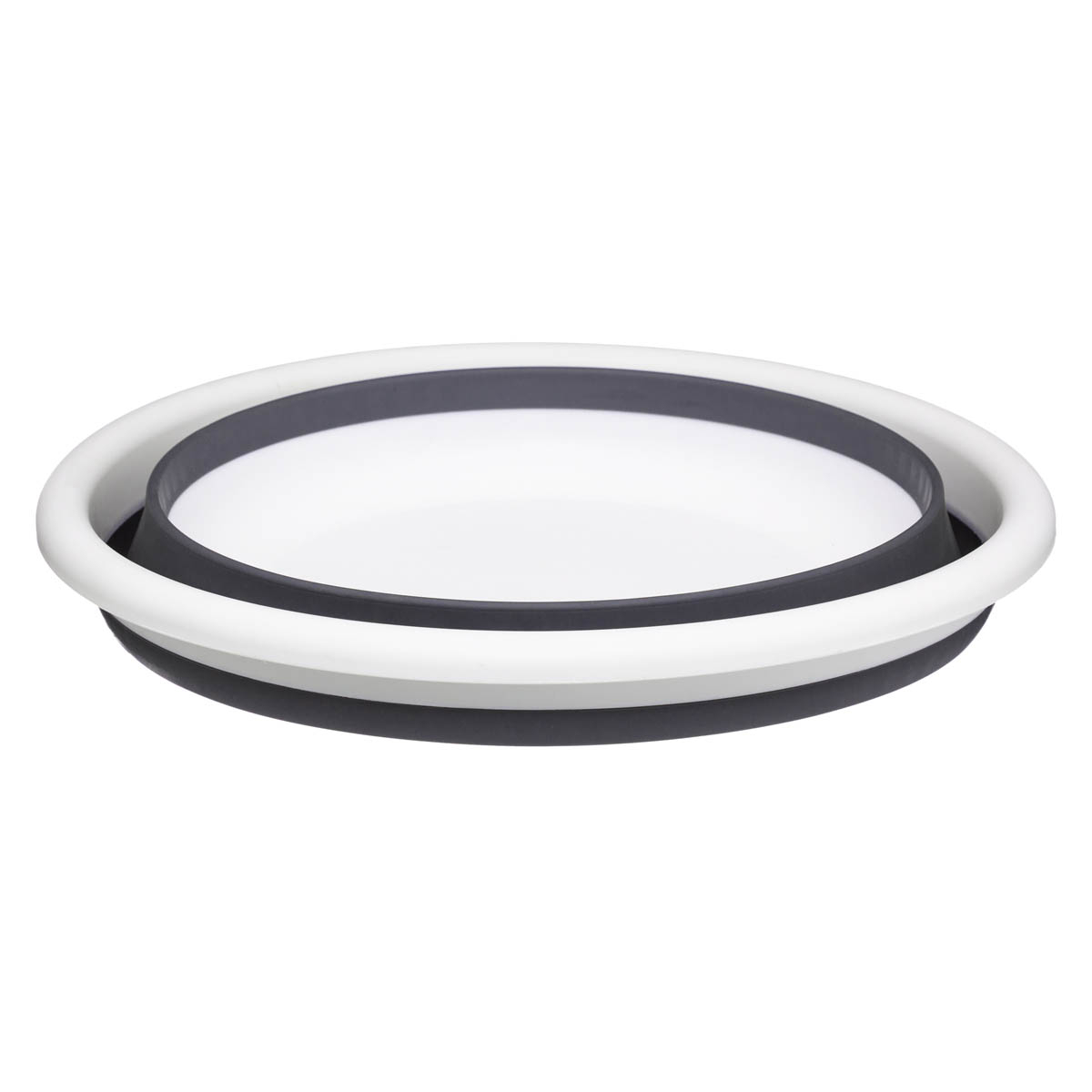 Λεκάνη πλυσίματος από σιλικόνη και πλαστικό υλικό σε γκρι και λευκό χρώμα. Είναι πτυσσόμενη με 5cm ύψος όταν είναι κλειστή, για να αποθηκεύεται εύκολα χωρίς να πιάνει χώρο. Ιδανική για την μεταφορά και το άπλωμα των ρούχων. Χωρητικότητα 6L.
